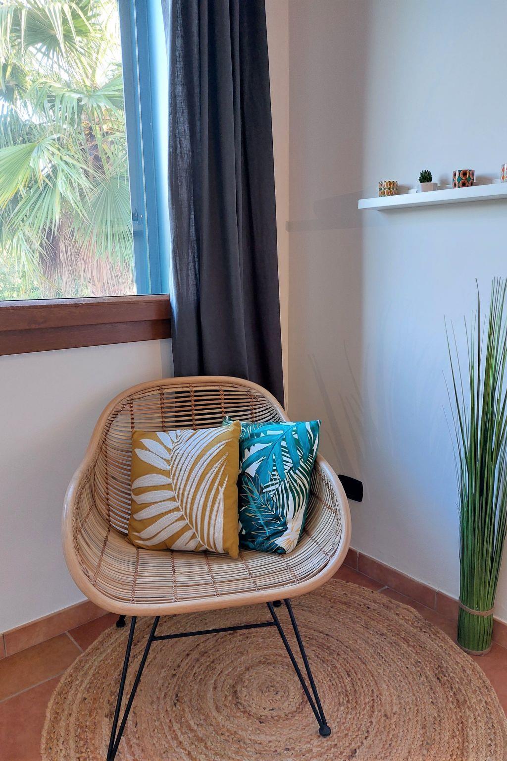 - Bedroom 3 (10 sqm): French bed (width 1.40), open wardrobe, air conditioning, terrace exit