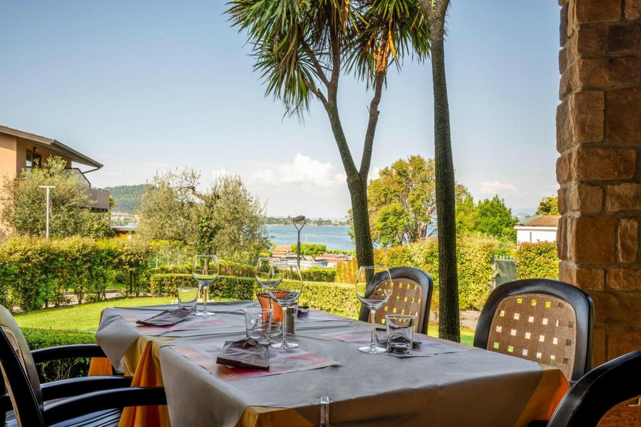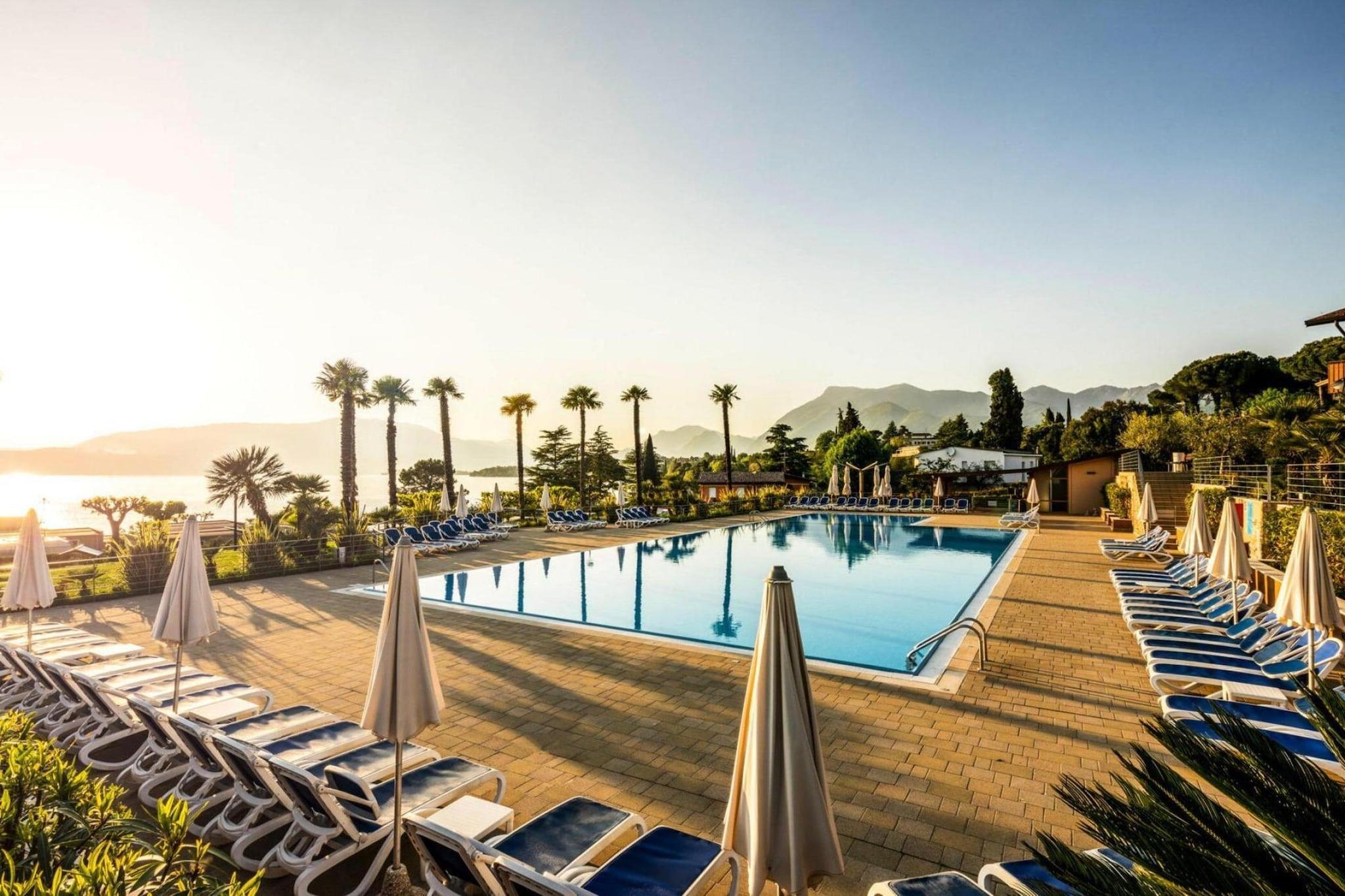 Direkte ved Gardasøen, i udkanten af Manerba-bugten: Lejligheder i et grønt område på omkring 30.000 kvadratmeter med direkte adgang til søen. Komplekset omfatter en rumligt smart adskilt campingplads med mobilhomes. Kommunen Manerba består af otte landsbyer, som er omgivet af olivenlunde og vinmarker. En malerisk kystzone, den lille havn Porto Dusano og de smukke lange strande er stedets charme. Ikke langt, på en fremtrædende klippe på 216 meter nær Montinelle, ligger det ruinerede slot Rocca di Manerba. Herfra har du en smuk udsigt over den sydlige del af Gardasøen og med god udsyn selv helt til Torbole i nord.Aktiviteter i nærheden: Brescia-regionen står for høje bjerge og bølgende bakker, middelalderlandsbyer og små livlige byer, lange strande og smukke havne. Udforsk regionen ved at følge Strada dei Vini e dei Sapori del Garda. De omkring 70 vingårde byder på alle slags kulinariske lækkerier. Nyd fremragende vine, regional olivenolie og kød-, pølse- og osteprodukter af høj kvalitet under smagningen. Lombards provinshovedstad Brescia er også et besøg værd, omkring 30 kilometer væk. Besøg markederne, opdag gamle bygninger og nyd travlheden i de utallige italienske caféer Gardaland, en forlystelsespark i umiddelbar nærhed, byder på sjov for hele familien Ikke egnet til personer med nedsat mobilitet