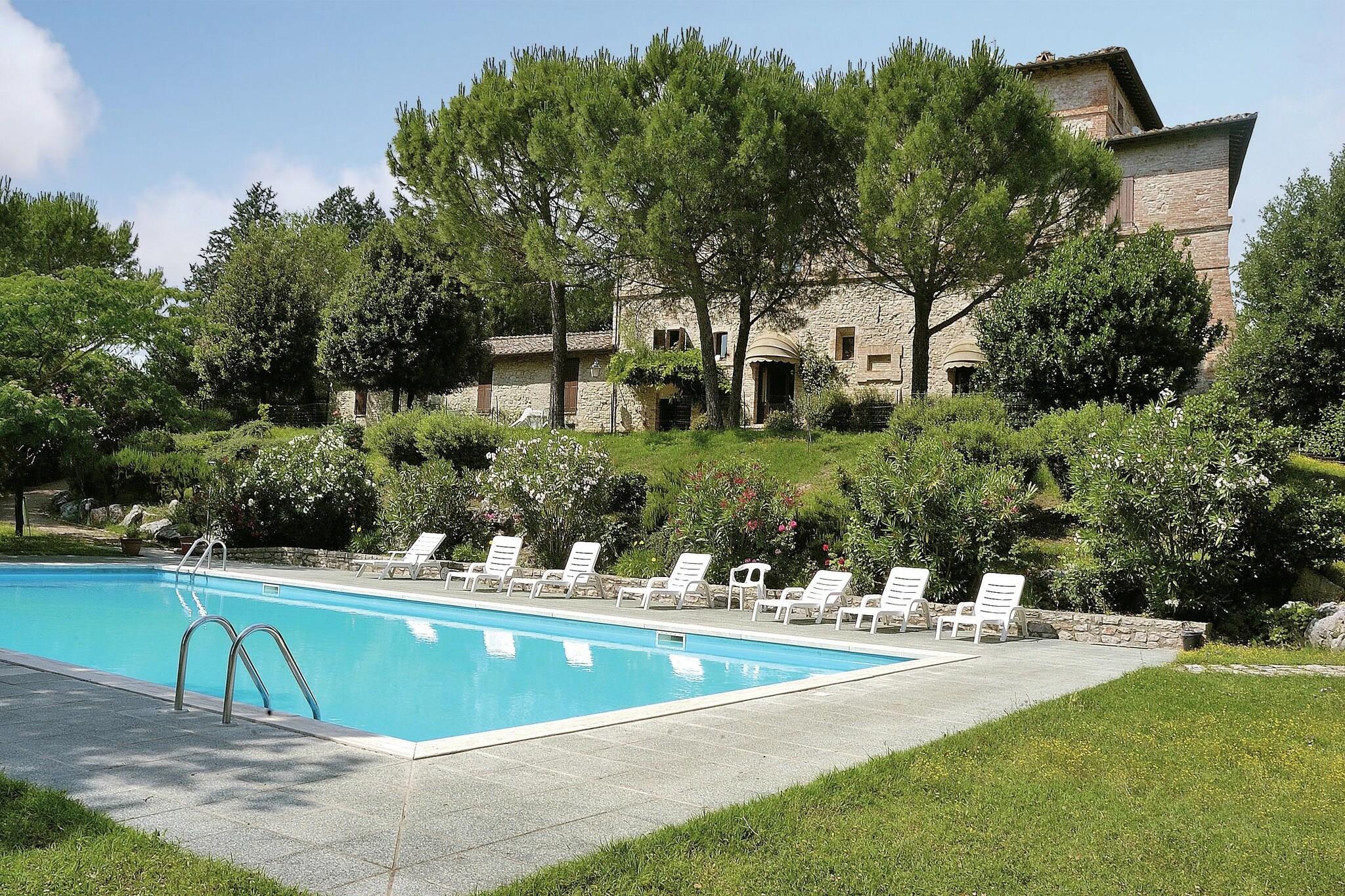 Oplev Umbriens magi fra denne hyggelige lejlighed i stueetagen, perfekt til en familie eller en gruppe på 4. Lejligheden er en del af en smukt restaureret bygning fra det 12. århundrede og har en privat terrasse, hvor I kan slappe af og nyde det fredelige landskab. En fælles swimmingpool bidrager til charmen og tilbyder en forfriskende måde at slappe af på efter en dag med udforskning. Beliggende kun 200 meter fra lokale butikker og et bageri, er hverdagens fornødenheder lige ved hånden. Lejligheden ligger mellem to af Umbriens mest ikoniske destinationer, Perugia (13 km), kendt for sin livlige atmosfære og kulturelle skatte, og Trasimenosøen (20 km), ideel til svømning, sejlads og naturskønne gåture. Lidt længere væk venter den historiske by Assisi (30 km) med sin fantastiske basilika og spirituelle atmosfære. Indenfor blander lejligheden komfort med tradition med varme møbler og bevarede originale detaljer. Uanset om du slapper af ved poolen, udforsker charmerende byer eller nyder lokal mad, er dette en ideel base for en afslappet og mindeværdig umbrisk ferie.