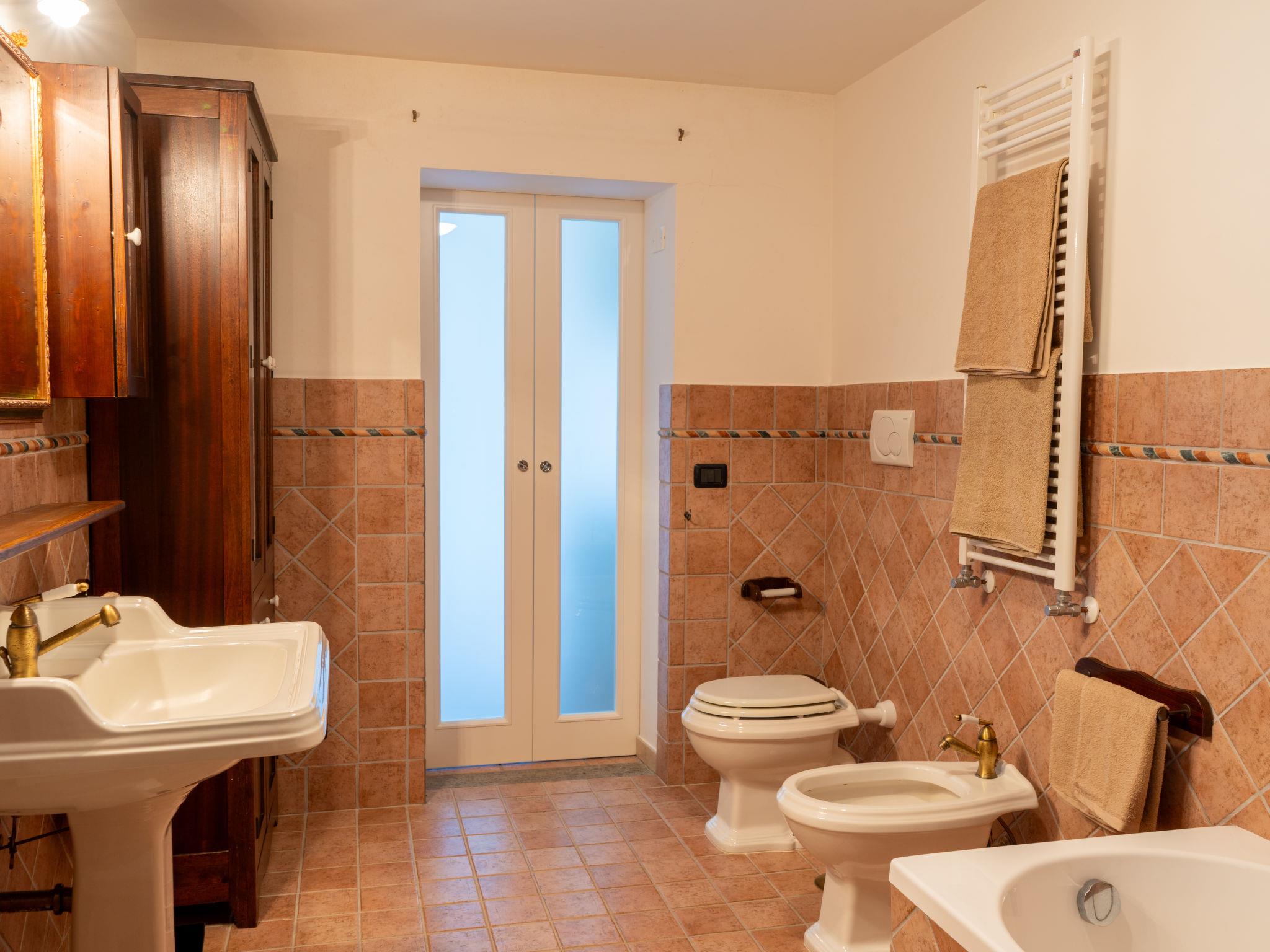 5-room villa 200 m2 on 2 levels. Practical and comfortable furnishings: large living room with open-hearth fireplace. Exit to the garden. 1 room with 2 beds and air conditioning. 1 double bedroom with air conditioning. Shower/bidet/WC. Upper floor: large living/dining room with open-hearth fireplace, kitchen corner and TV (flat screen), air conditioning. Exit to the loggia. 1 double bedroom with air conditioning. Kitchenette (4 hot plates, oven, dishwasher, microwave). Bath/bidet/WC. Electric heating. Patio 5 m2, roofed. Facilities: washing machine, mosquito net. Internet (WiFi). Maximum 1 pet/ dog allowed. IT058016C2ZMO5NW7B