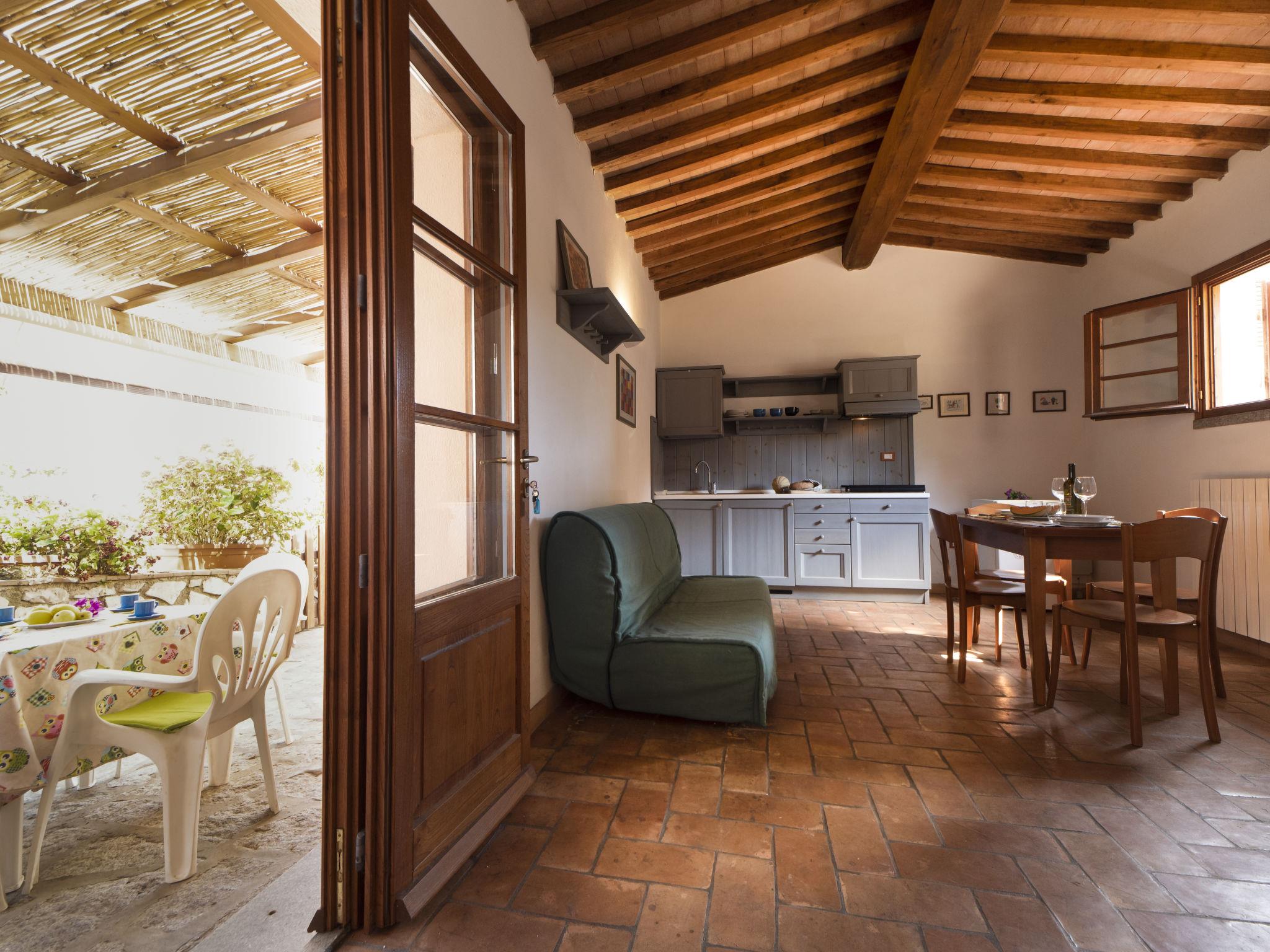 2-room apartment 40 m2. Practical and cosy furnishings: living/sleeping room with 1 double sofabed, dining table and digital TV. 1 double bedroom. Kitchenette (4 gas rings). Exit to the veranda. Shower/bidet/WC. Air-conditioning, forced-air heating. Terrace partly roofed. Terrace furniture, deck chairs (2). Parking (roofed, 1 car) at 150 m. Please note: non-smokers only. Private entrance. Please note: From the living room/bedroom access via 3-4 steps to the bedroom and bathroom. IT049010C2AJP8R2VG