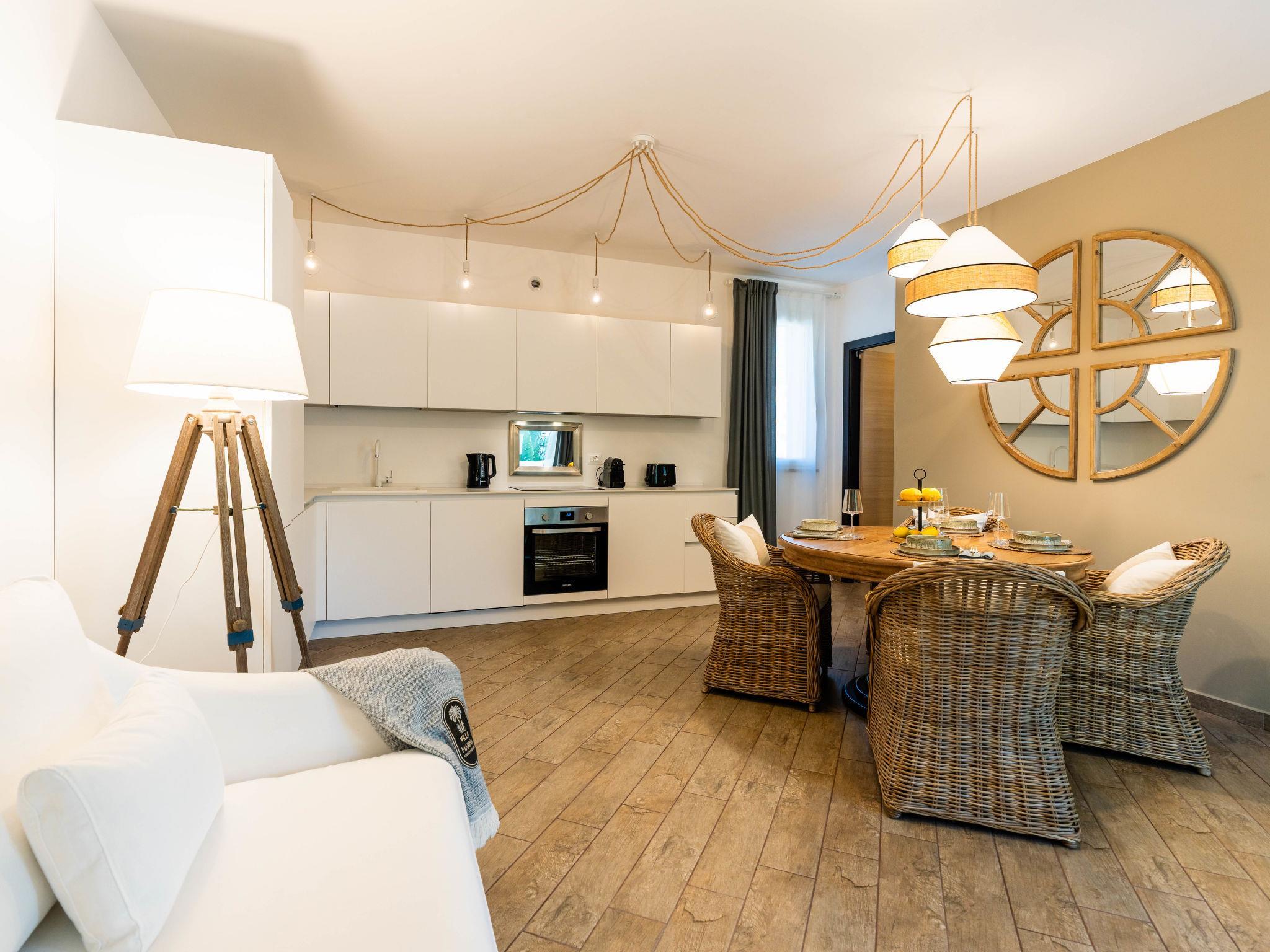 "Grecale", 2-room apartment 60 m2 on 1st floor. Very modern and tasteful furnishings: living/dining room with 1 sleeping facility (80 cm, length 190 cm), TV and air conditioning. 1 double bedroom. Kitchenette (oven, dishwasher, 4 induction hot plates, toaster, kettle, electric coffee machine). Shower/bidet/WC. Air-conditioning, forced-air heating. Heating available only from 01.11. to 15.04. Terrace. Terrace furniture. Beautiful view of the resort. Facilities: washing machine, children's high chair, baby cot for up to 2 year olds, hair dryer. Internet (WiFi, free). Please note: smoke alarm, fire extinguisher. shared terrace. IT009006B4OBB9BHWK