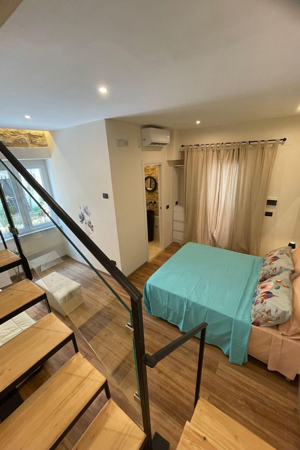 Inside, Il Rifugio di Arcangelo reveals itself with a recent renovation that has placed comfort and functionality at the centre. On the ground floor, guests are welcomed into a spacious double bedroom, equipped with a private bathroom, a window and a French balcony offering a wonderful view of the characteristic old town. The first floor opens up to a cosy living area, with a fully equipped kitchenette, a spacious living room that includes a double sofa bed to accommodate additional guests, a bathroom and a balcony overlooking the quiet street in the centre.