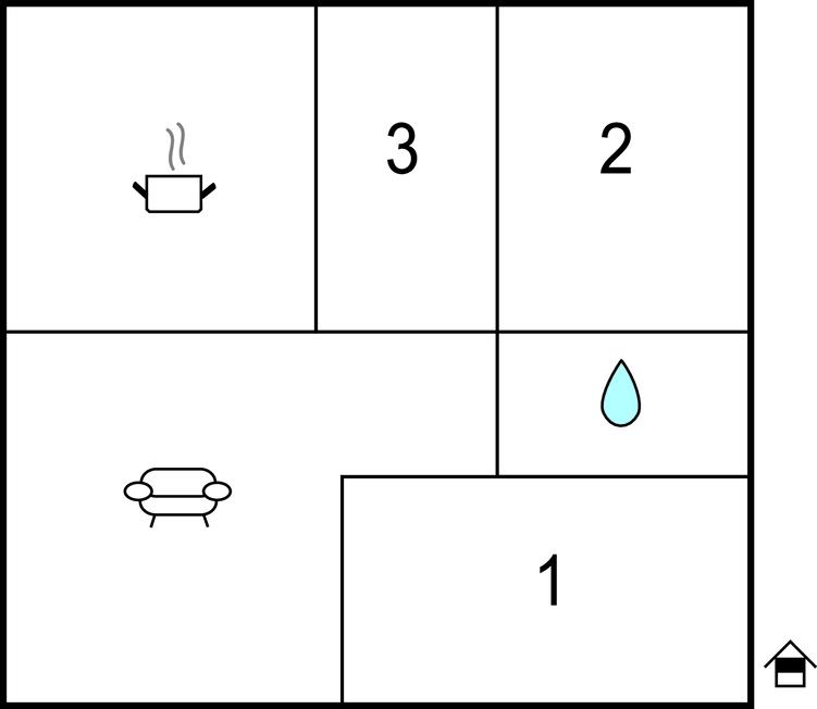 Opholdsstue 30m2 - 1 Soveplads. (Sofa, madras eller lignende).