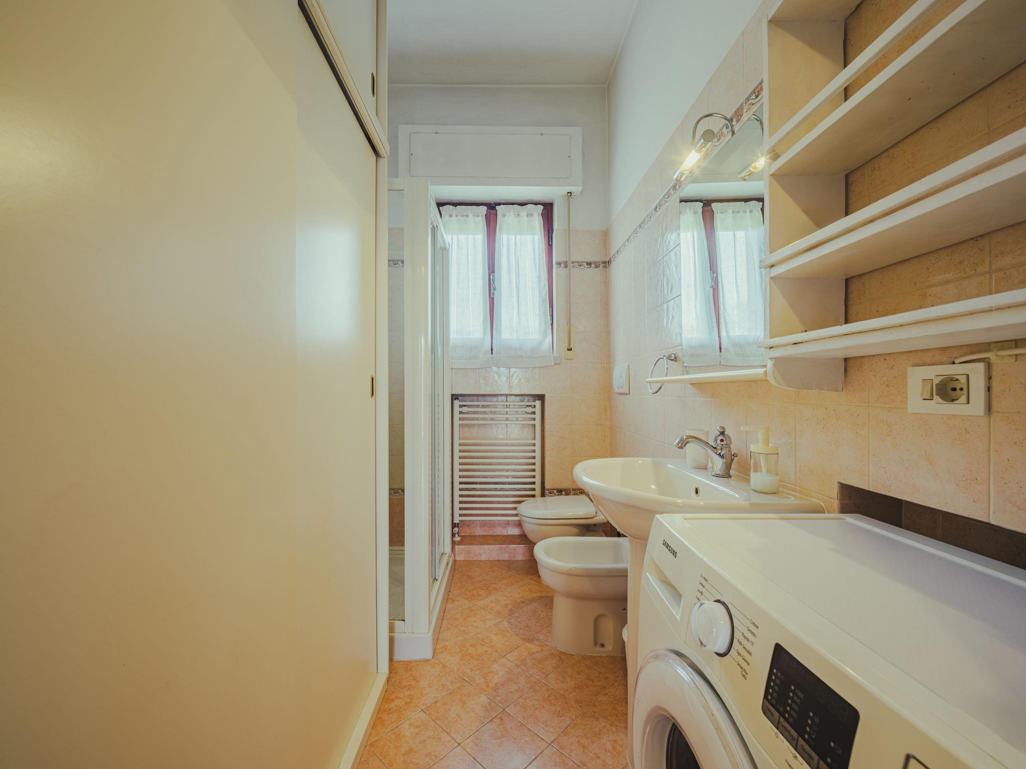 3-room house 80 m2, on the upper ground floor. Beautiful and cosy furnishings: 1 double bedroom with air conditioning. 1 room with 2 beds. Kitchen-/living room (oven, dishwasher, 4 gas rings, toaster, microwave, electric coffee machine) with open-hearth fireplace (only for decoration), dining table, TV and flat screen. Exit to the terrace. Bath/bidet/WC, shower/bidet/WC. No heating option. Small terrace 8 m2. Terrace furniture, deck chairs (2). Facilities: washing machine, iron, children's high chair, baby cot for up to 2 year olds, hair dryer. Internet (WiFi). Parking (fenced). Please note: non-smoking house. Smoke alarm, fire extinguisher. IT045010C2GRH7ZW8S
