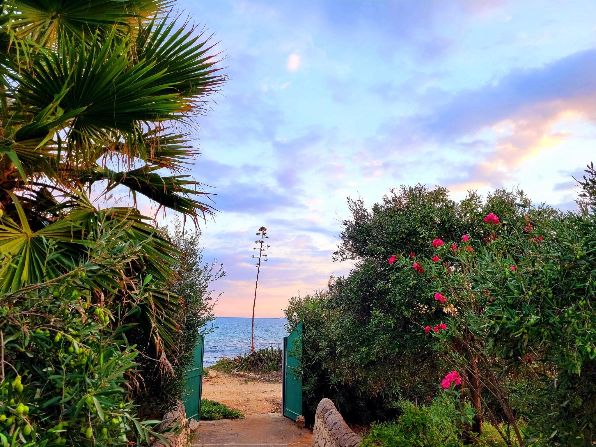 Small holiday flat directly by the sea. Beautiful sea view. Private and direct access to the sea. Mediterranean garden. Two sandy beaches nearby. Ideal starting point for excursions. Contact person on site.