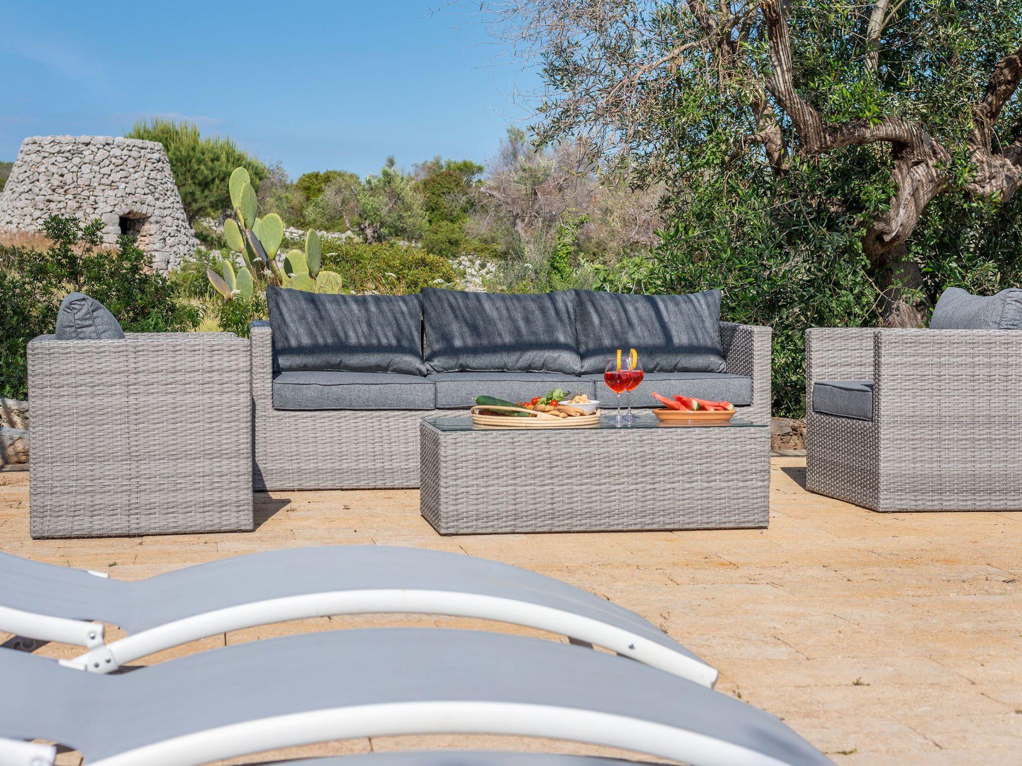 A garden full of Mediterranean vegetation completely surrounds the house and is made up of various terraces and dry stone walls. The dining area is set up under a beautiful pergola equipped with a built-in sofa, barbecue, and comfortable sink; a path leads to the 4x10 m swimming pool (depth 140 cm) with solarium area.