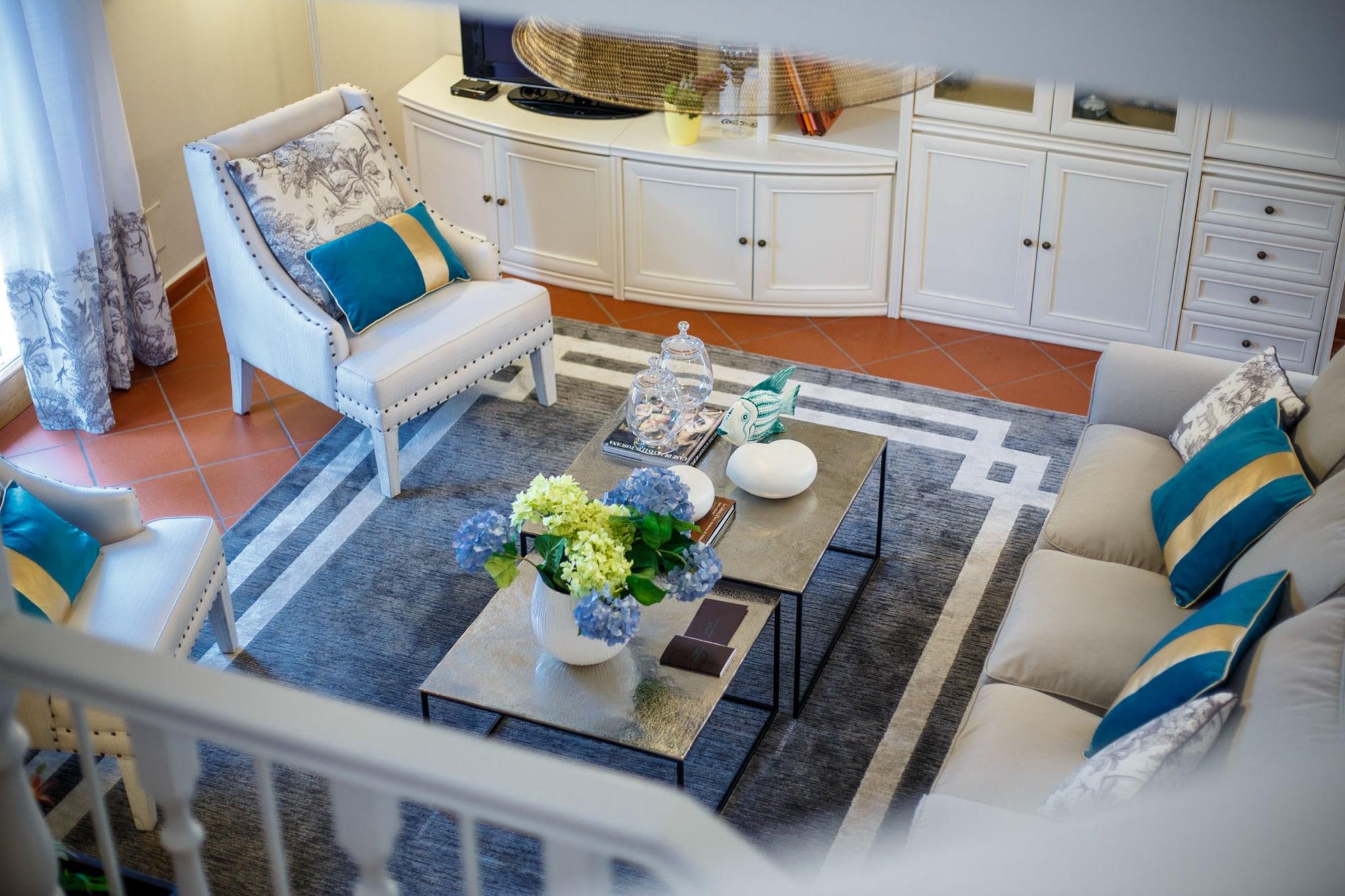 Stueetage: (Stue(Fjernsyn(parabol), sofahjørne), spisestue(spisebord), Køkken(elkedel, brødrister, kaffemaskine, ovn, mikrobølgeovn, opvaskemaskine , køleskab, fryser, Saftpresser, ), badeværelse(bruser)) På 1. etage: (soveværelse(dobbeltseng), soveværelse(dobbeltseng), Soveværelse med badeværelse(dobbeltseng, bruser), badeværelse(bruser)) Havemøbler, tremmeseng, vaskemaskine, klimaanlæg, have, parkering, barnestol, strygejern, føntørrer