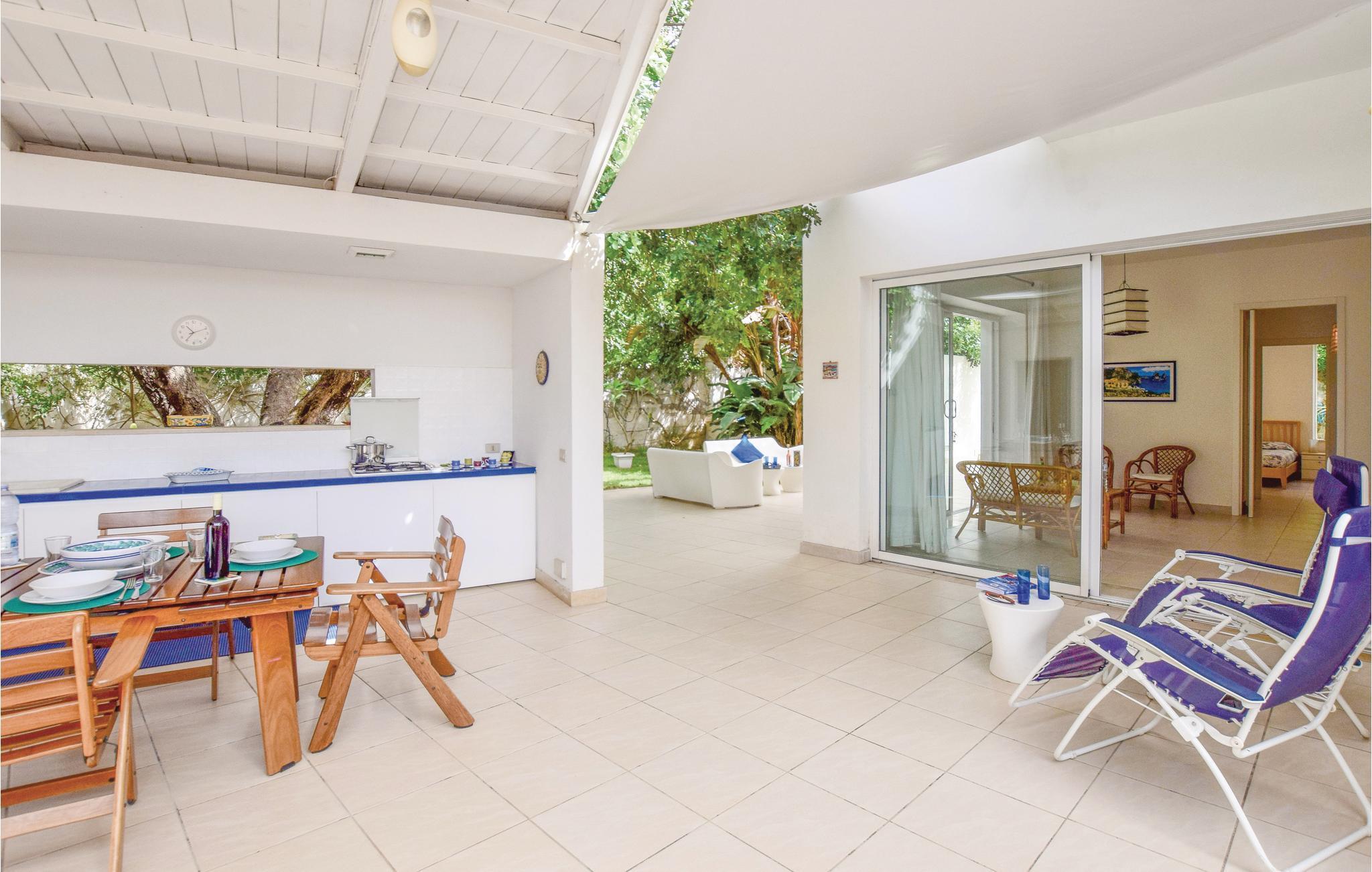 Denne del af et dobbelthus ved indgangen til landsbyen for Marina di Ragusa, er stilfuldt indrettet. Gæsterne har en have med store gamle johannesbrødtræer, som giver skygge midt på dagen. Et udendørsområde er udstyret med køkken. De overdækkede områder er ideelle til hyggelige stunder udenfor i det milde klima. Indvendigt er der en opholdsstue som har adgang til haven via store glasdøre.