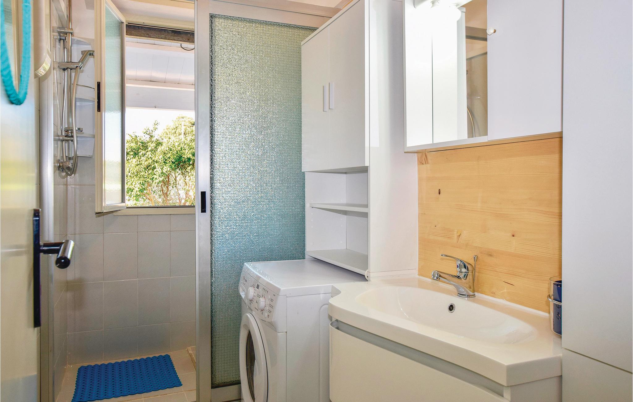 I den velholdte have er der et skyggefuldt område med bord, stole og grill, hvor det er dejligt at spise udendørs. Huset er omgivet af en altan med panoramaudsigt og har udgang fra stue og køkken via en glasdør – som kan skubbes fra, så hele rummet bliver til en åben veranda med havudsigt. I kan tage en svømmetur i den fælles pool lige nøjagtigt når I har lyst (maks. dybde 3 m). I haven er der også liggestole, parasoller og et andet badeværelse med udendørs bruser.