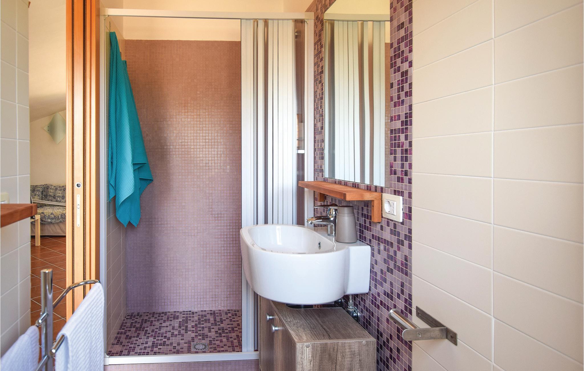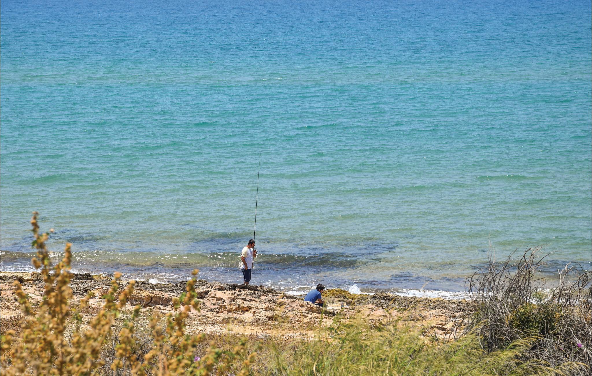 Den lyse bolig har en lille møbleret balkon med havudsigt. Grunden holdes pænt og har et græsareal med blomster og træer; selv belysningen udstråler stor opmærksomhed på detaljer og smedejernslys giver en varm og indbydende atmosfære om aftenen. I stueetagen er der en solrig terrasse med stole, borde og liggestole; På bagsiden er der en grill med en vask og en støtteflade til tilberedning af lækre retter. Tæt på poolen er der en udendørs bruser og et lysthus med liggestole og lænestole. Adgang til ejendommen sker via en ekstern trappe.