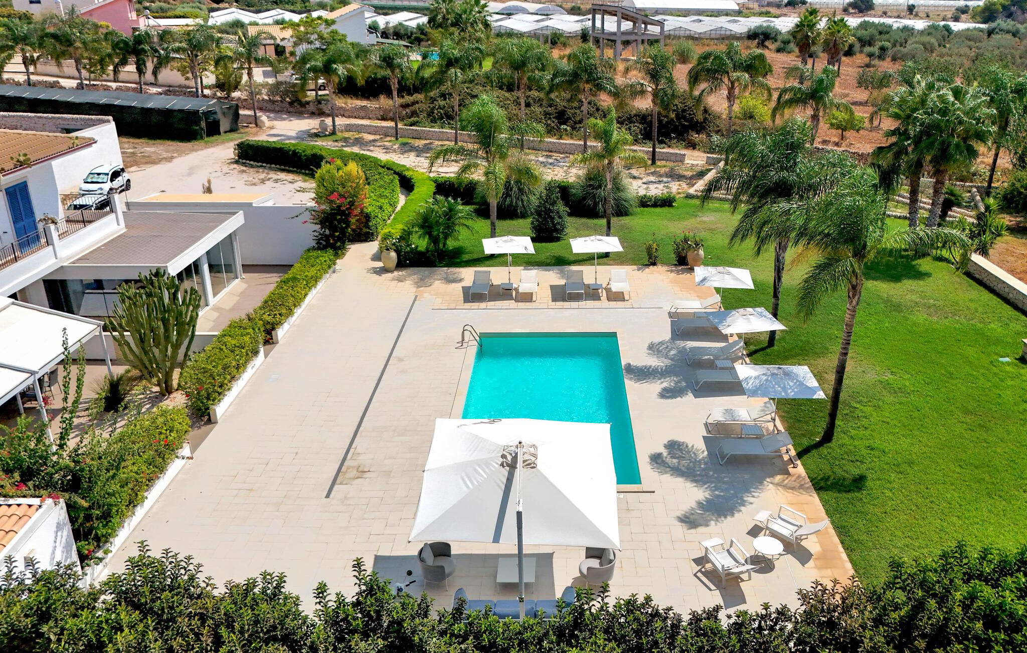 Tilbring en afslappende ferie i denne stilfulde lejlighed med pool, have og masser af plads til at nyde.
