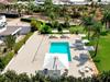 Træd ud i det rummelige udendørsområde og nyd middelhavsatmosfæren. Slap af på den overdækkede terrasse i komfortable loungemøbler eller sæt jer ved det udendørs spisebord. Brug grillen til aftener sammen og nyd varme dage ved poolen med solterrasse, liggestole og parasoller.
