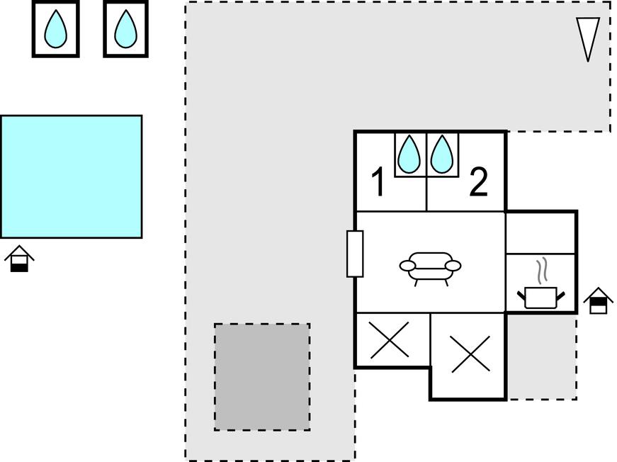 Bemærk. Ejeren kommer ind på sit værelse via den fælles stue.