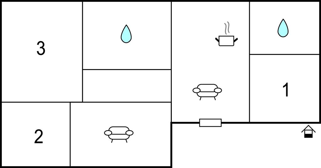 Badeværelse 3m2 (nr. 1) - WC. Varmt og koldt vand. Bruser