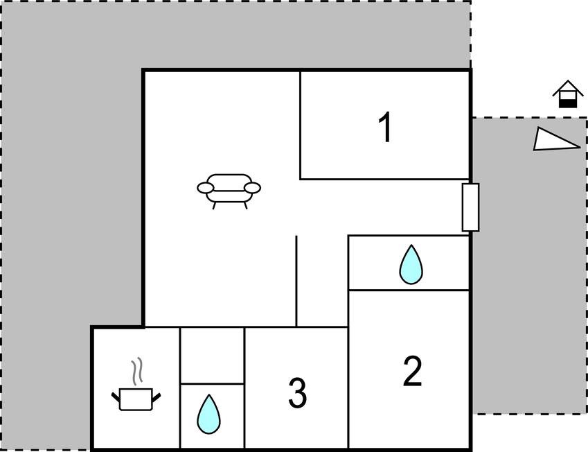 Opholdsstue 40m2 - 1 Soveplads. (Enkeltseng(e)). 1 Soveplads. (Sofa, madras eller lignende).