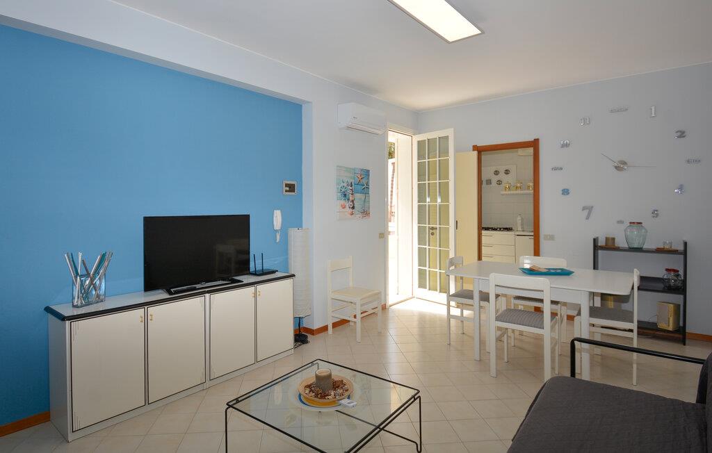 Den åbne stue i jeres lejlighed, med en behagelig sofa og spisebord, lægger op til at være social. Se tv sammen eller brug tiden på spil og måltider. Lav mad i det lille, praktiske køkken med adgang til balkonen og nyd den smagfulde indretning i jeres lejlighed, som skaber en behagelig atmosfære med lyse toner og farverige detaljer. Fra vinduet i stuen kan I se Middelhavets glitrende blå farve.