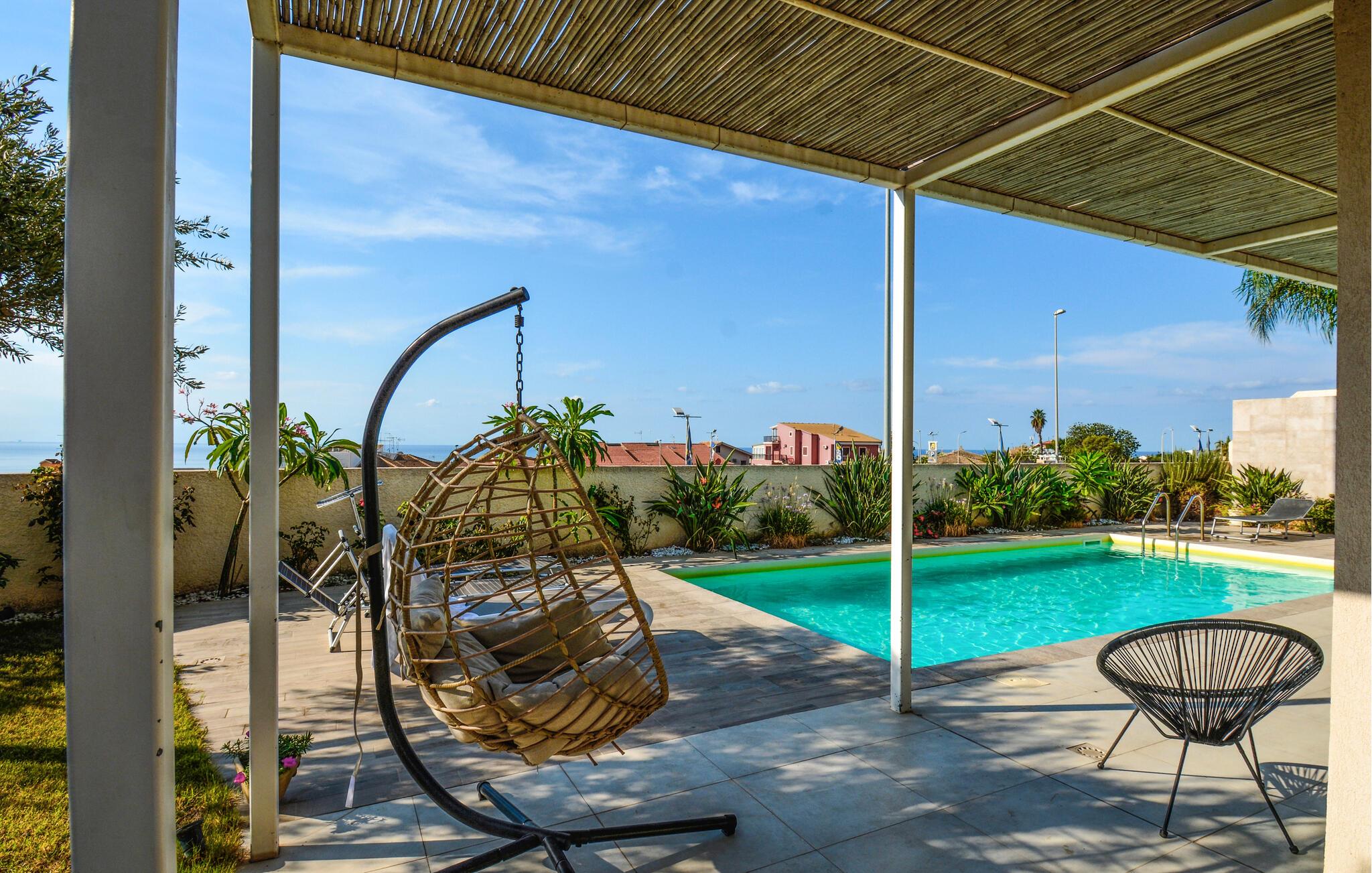 Nyd en dejlig ferie i dette feriehus med pool og havudsigt. Dette feriehus kombinerer på harmonisk vis enkel elegance og komfort. Nyd udsigten fra sofaen gennem det store vindue og slap af med en kop kaffe. Lyt til de seneste hits eller tilbered lækre måltider sammen i det moderne køkken. Hop i poolen når som helst for en forfriskende dukkert. Bagefter kan I nyde morgensolen med en afslappet morgenmad på terrassen eller tilbringe eftermiddagen her med en god bog. Om aftenen inviterer terrassen med sin stemningsfulde belysning jer til at afslutte dagen med et glas vin. Stranden ligger kun et stenkast væk og er ideel til at nyde solen, det fine sand og det glitrende blå hav. I Marina di Ragusa venter en livlig promenade med caféer, restauranter og en malerisk lystbådehavn, der gløder med stemningsfuldt lys om aftenen. Tag på udflugter i det blidt bølgende bagland, hvor olivenlunde og mandeltræer præger landskabet. Her vil I opleve den særlige blanding af middelhavsro og siciliansk charme.