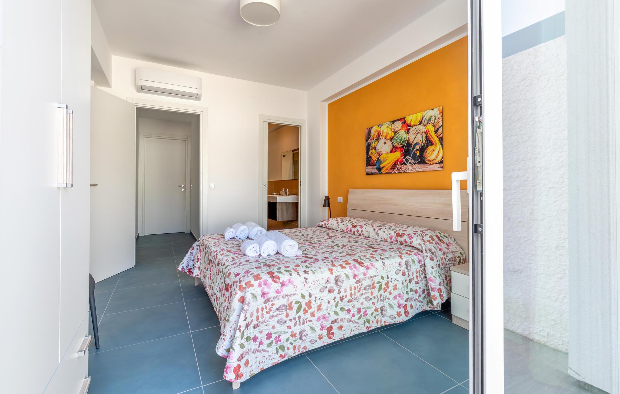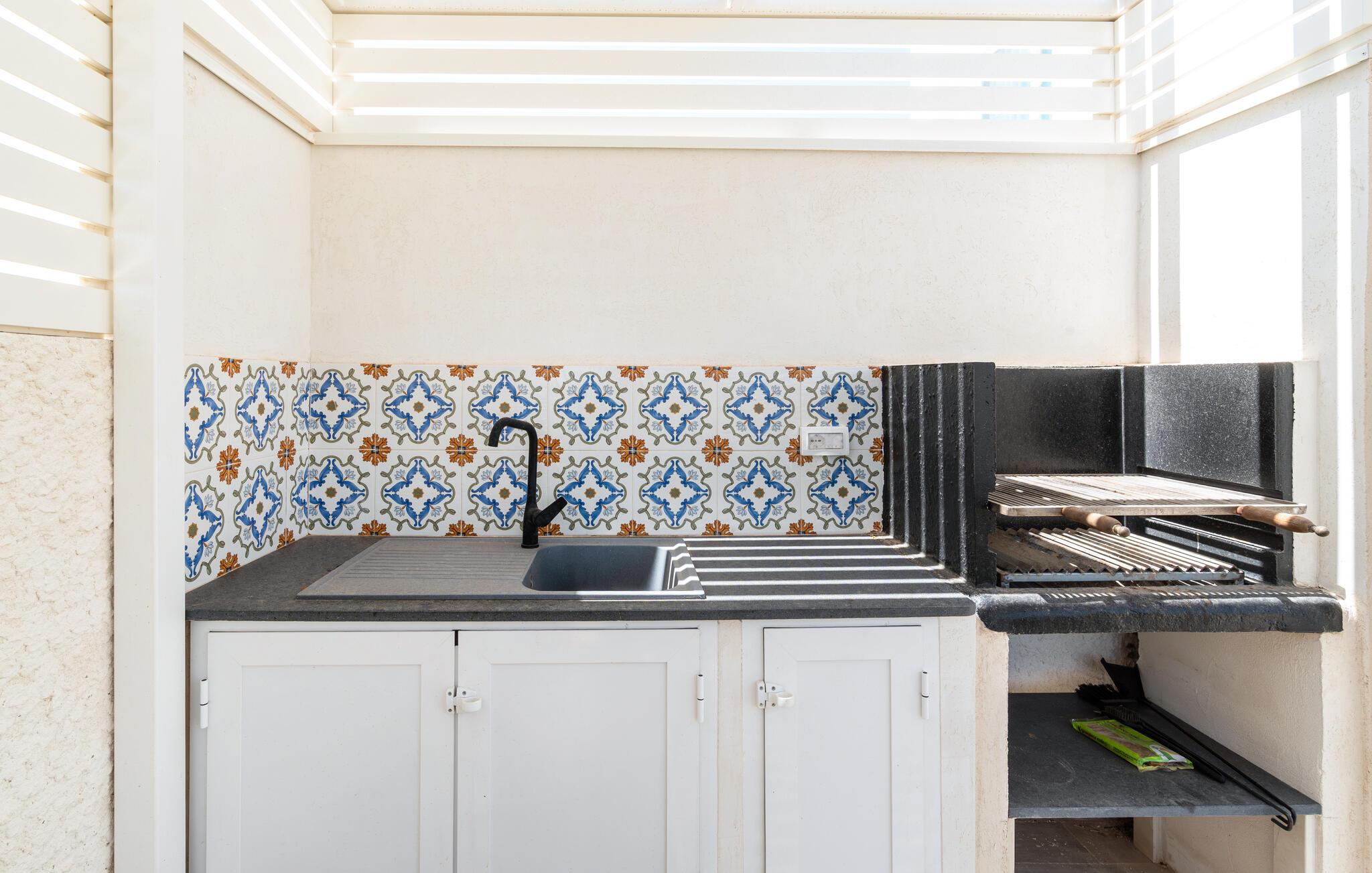 Dette rummelige dobbelthus ligger kun en kort gåtur fra sandstranden og byder jer velkommen med en frisk og sofistikeret atmosfære. Fremtryl middelhavsretter, hyggesnak over afslappede måltider, og afslut en lang dag med en god bog eller en sjov spilleaften.