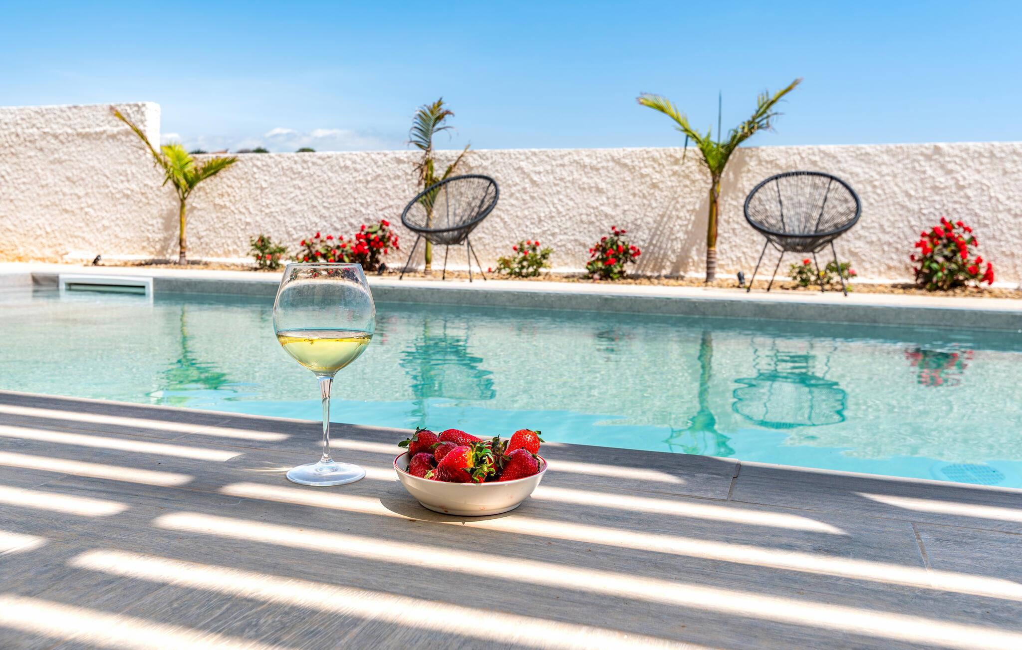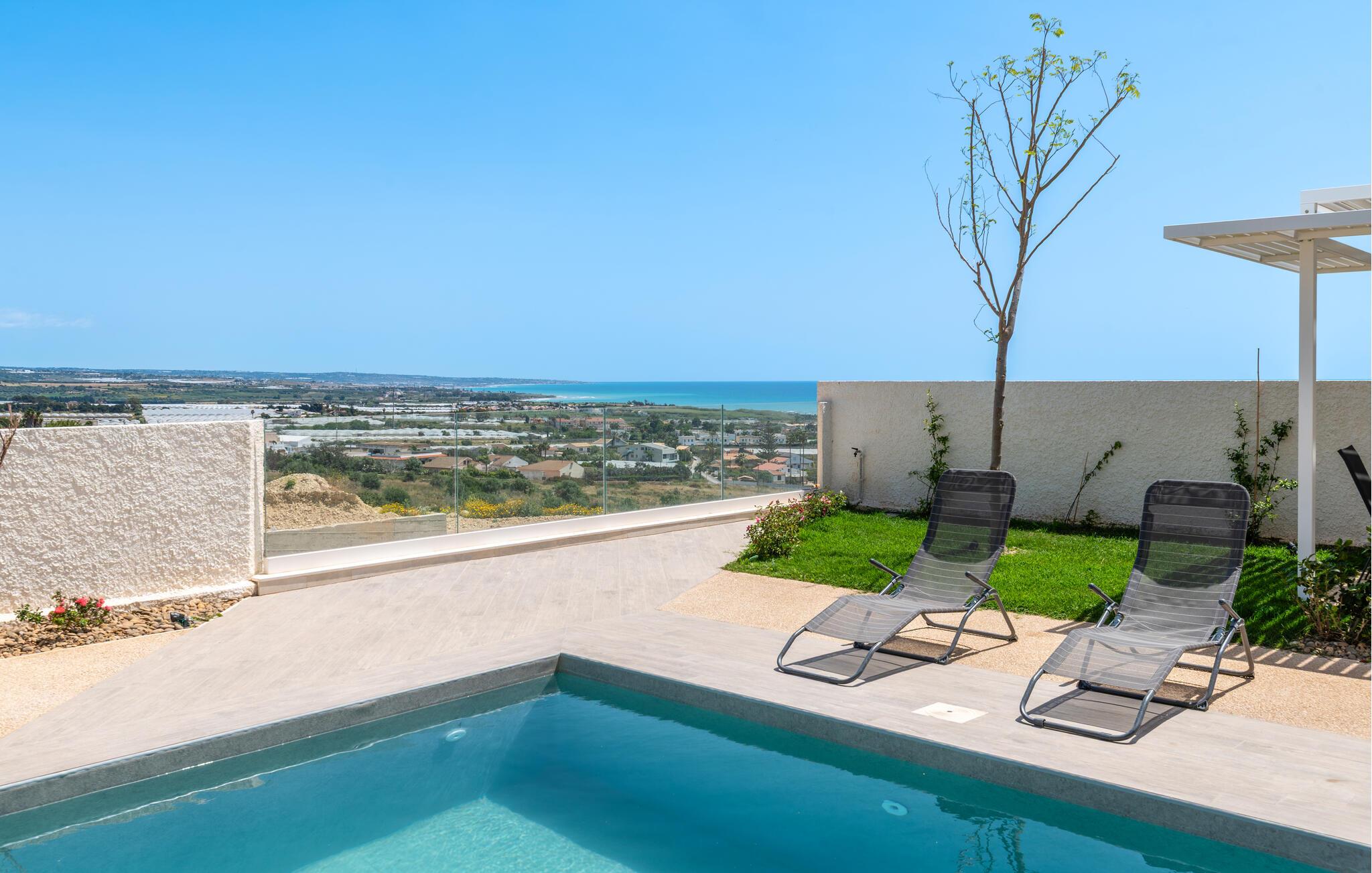 Forkæl jer selv med en uforglemmelig ferie i dette komfortable feriehus med havudsigt, pool og spabad.