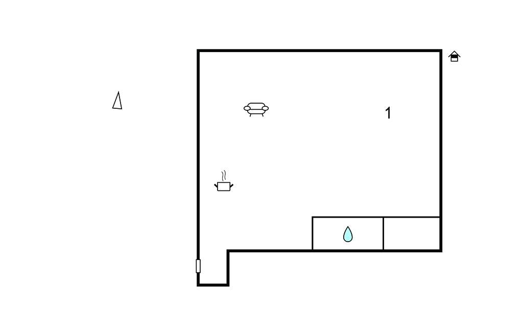 Opholdsstue/køkken 55m2 - 2 Sovepladser. (Dobbeltseng(e)). 2 Sovepladser. (Sofa, madras eller lignende).