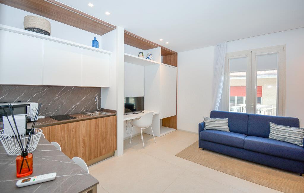 Denne charmerende og velholdte studiolejlighed er den perfekte base for at kombinere urban flair med solrige dage på stranden. Tilbered lækre måltider med lokale råvarer og planlæg jeres aktiviteter over hyggelige måltider ved det runde spisebord. Efter en lang dag kan I slappe af på sofaen med en bog eller spille et brætspil.