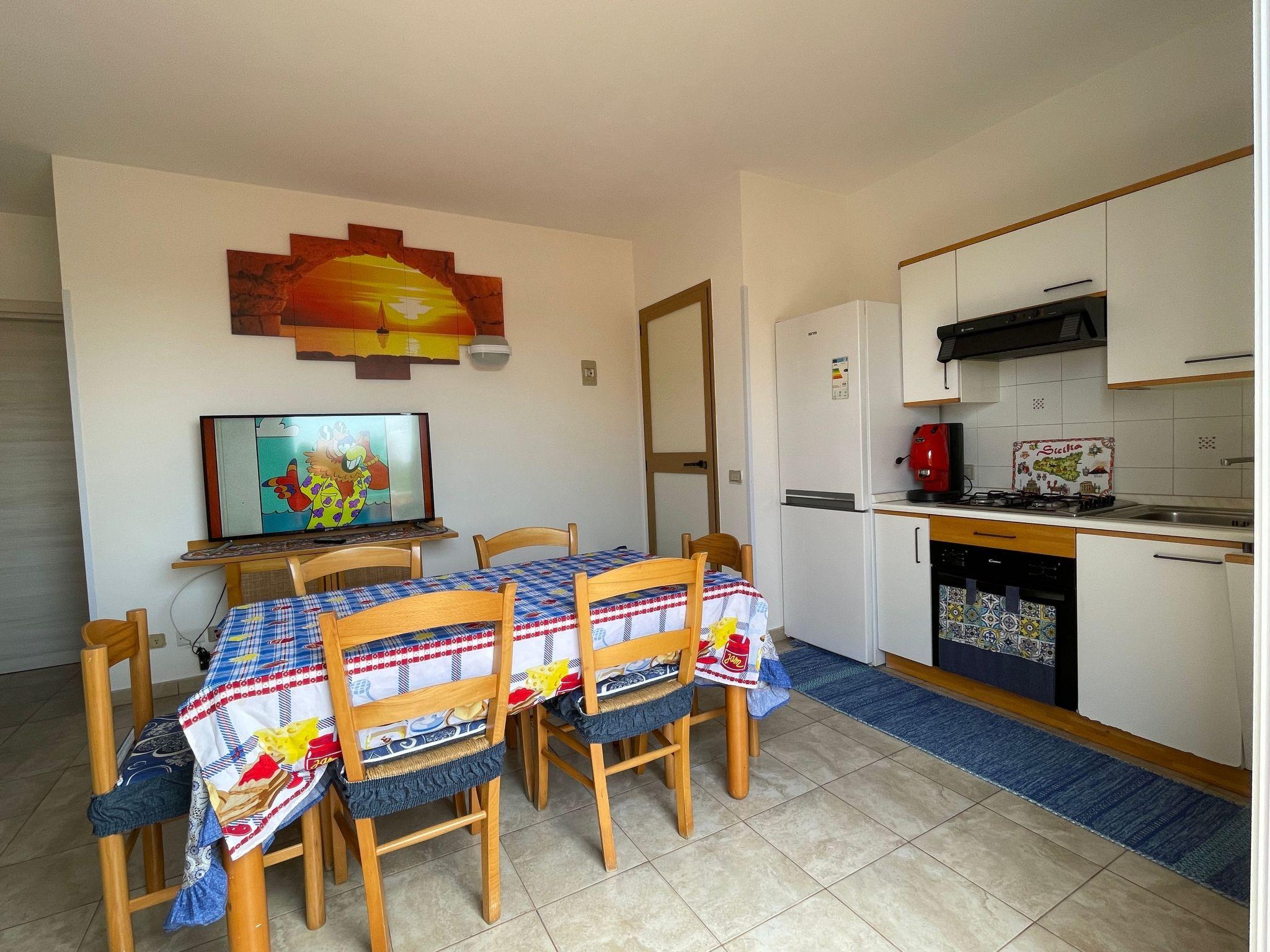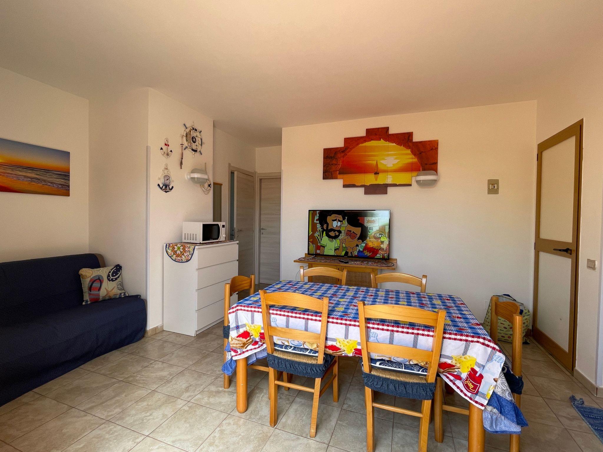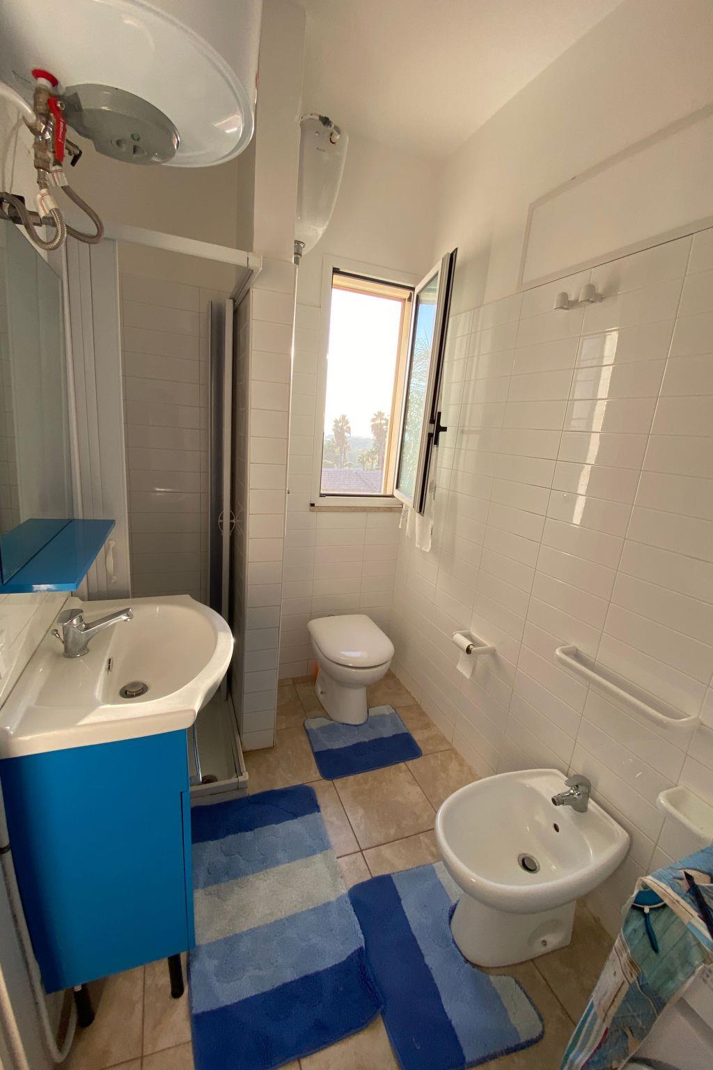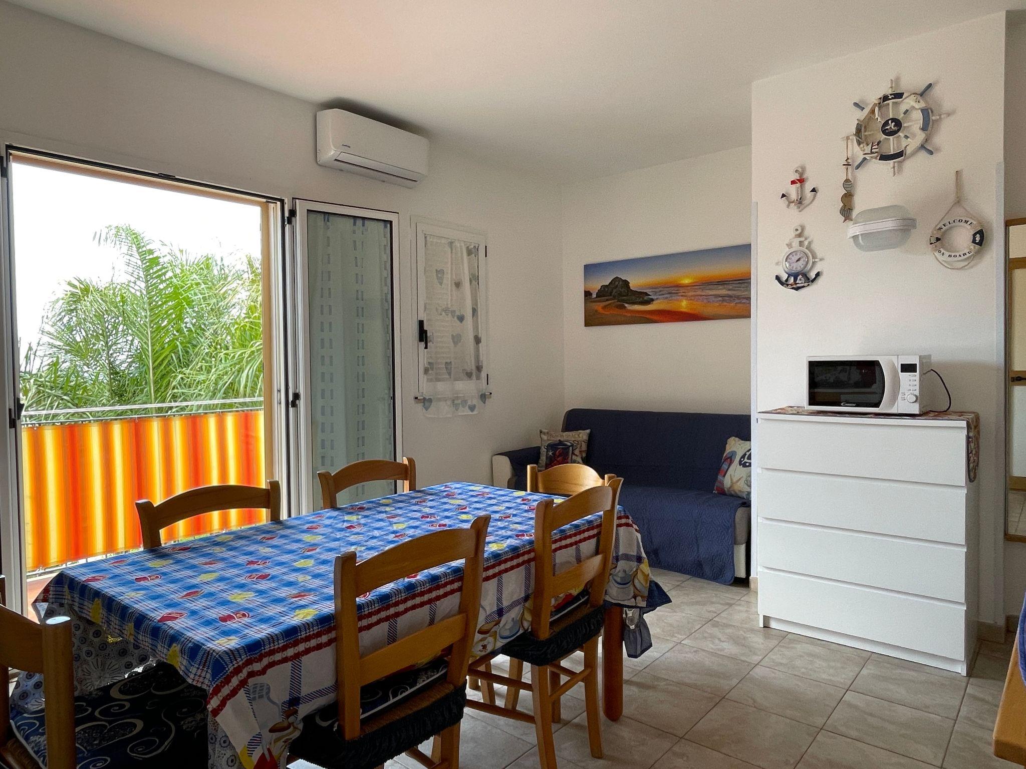 Apartment with 6 beds, located on the first floor, consists of a large living room kitchen with balcony facing south (from where you can see the sea) with a double sofa bed, kitchen complete with 4 burners, electric oven, fridge with freezer, dishwasher, complete with pots and pans for cooking and cleaning, digital TV, coffee machine, microwave, toaster, iron and ironing board, vacuum cleaner, air conditioning / heat pump, everything you need to live well both in winter and in summer. - The double bedroom, equipped with digital TV, air conditioning / heat pump, balcony on the parking area, mosquito nets, safe inside the wardrobe; - another room with 2 single beds (if needed they can be joined and made into a double bed) with a window on the parking area equipped with mosquito nets; - full bathroom with shower, hairdryer and washing machine available. -