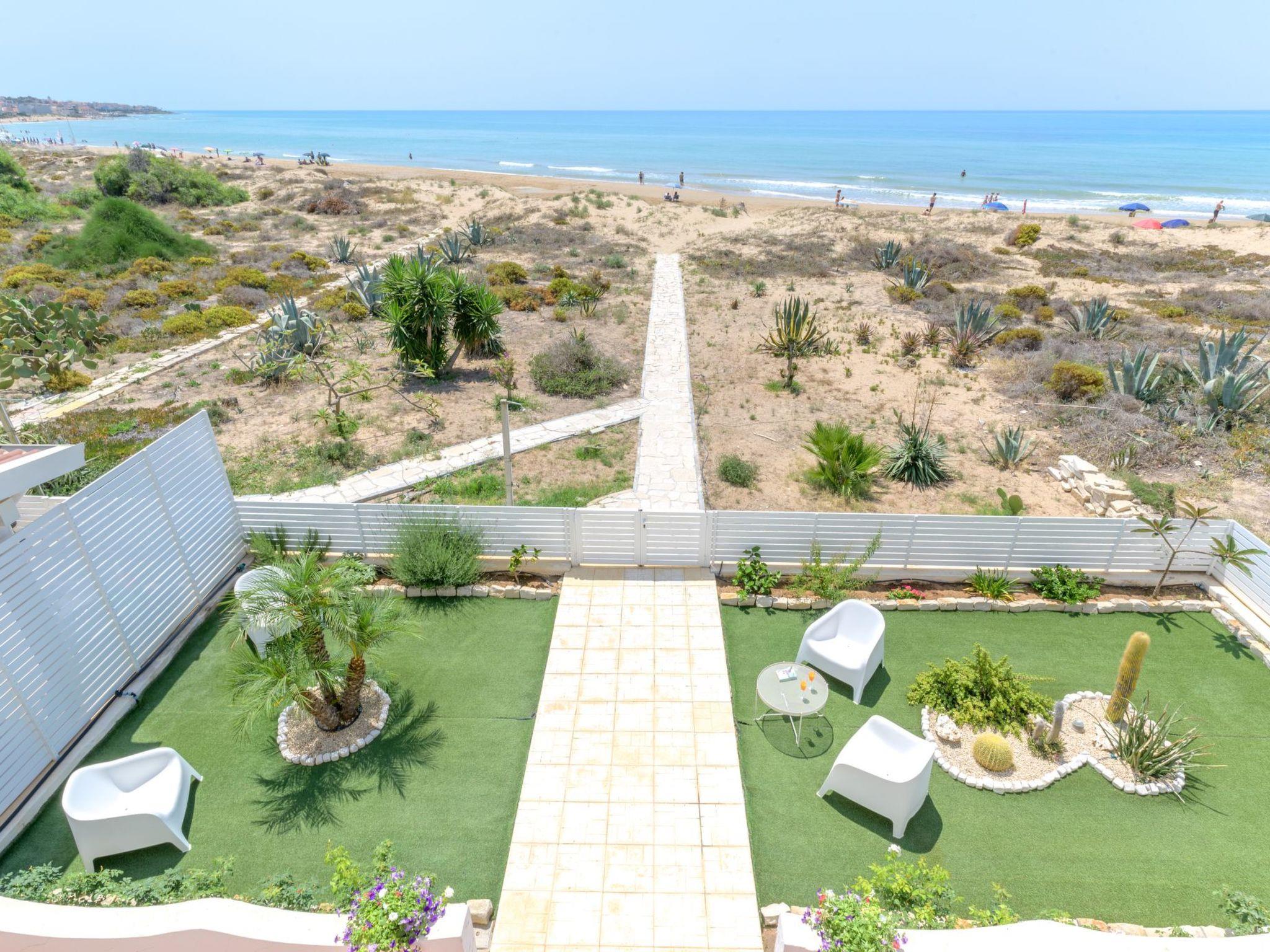 Location The villa is located right on the beach, facing the sea, in the village of Caucana, 2 km from Punta Secca and 4 km from Marina di Ragusa, in the south-east of Sicily. Punta Secca is a famous fishing village renowned for being the set of the Italian series 'Il Commissario Montalbano' and for being home to its famous house. Not far away are the UNESCO cities in the province of Ragusa, such as Ragusa Ibla (27 km), Modica (28 km) and Scicli (18 km) and the beaches of Punta Braccetto (6 km), the Randello Nature Reserve (8 km), Donnalucata (13 km) and Sampieri (24 km). The 'Pio La Torre' airport in Comiso is 30 km away and the golf courses of the Donnafugata Golf Resort & Spa are 12 km away. There is an equipped lido 150 m from the villa.
