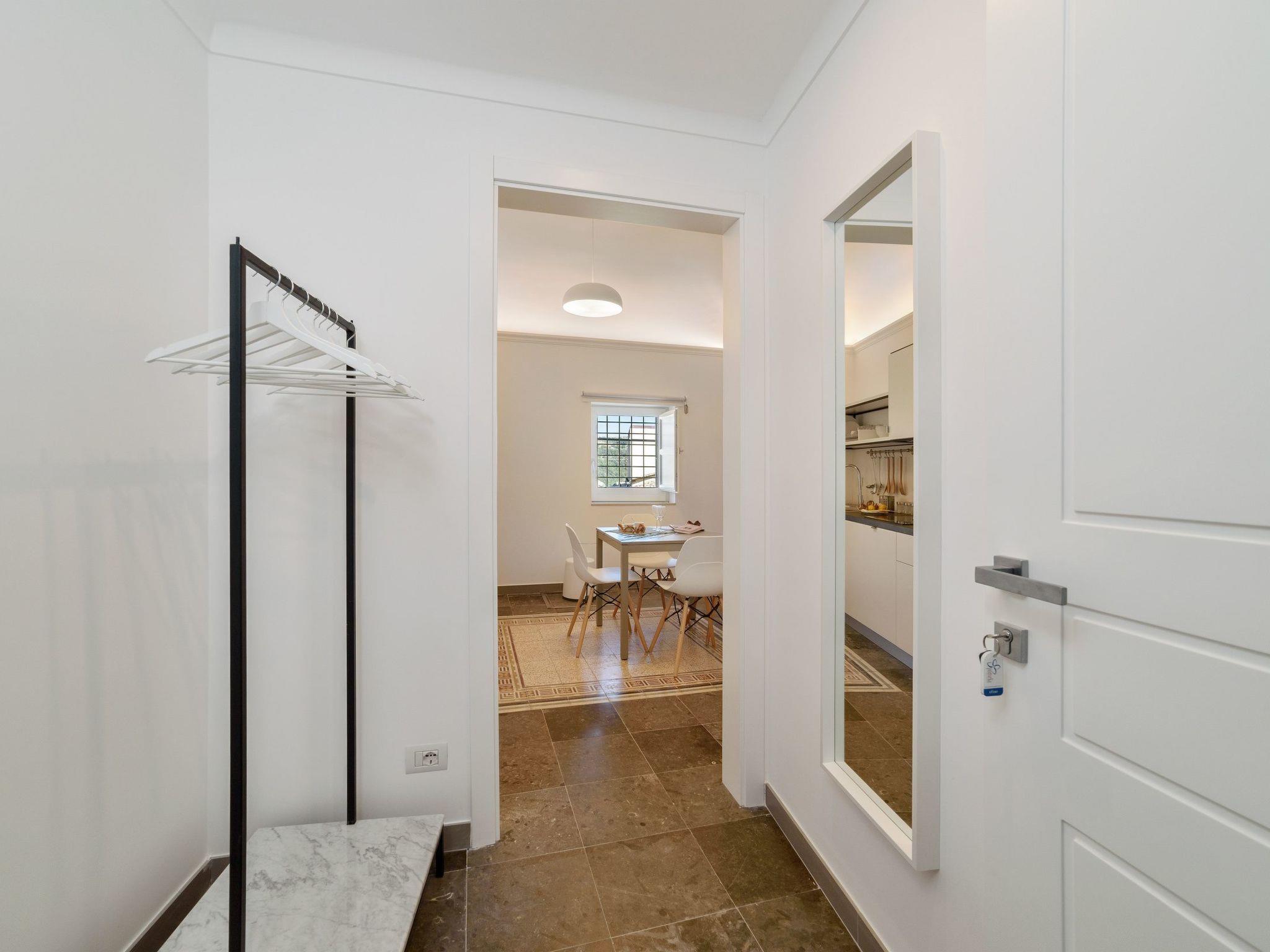 Brand new and elegant two-room apartment with balcony and a splendid view of the Cathedral of San Giorgio and the square. On the second floor of a stately building, it has a refined and chic atmosphere, with elegant furnishings and attention to detail, with stuccos, decorated floors and vaulted frescoed ceilings.