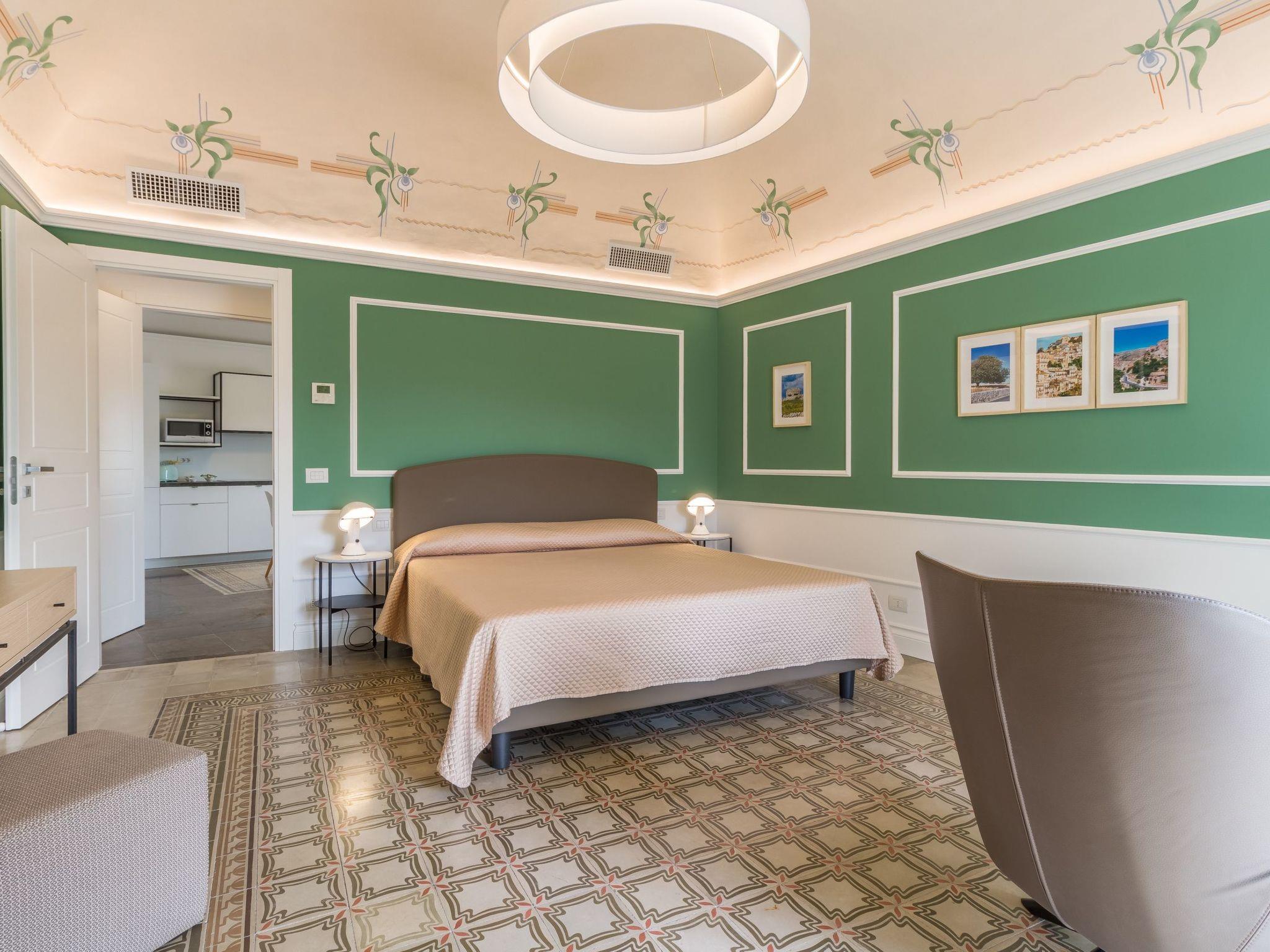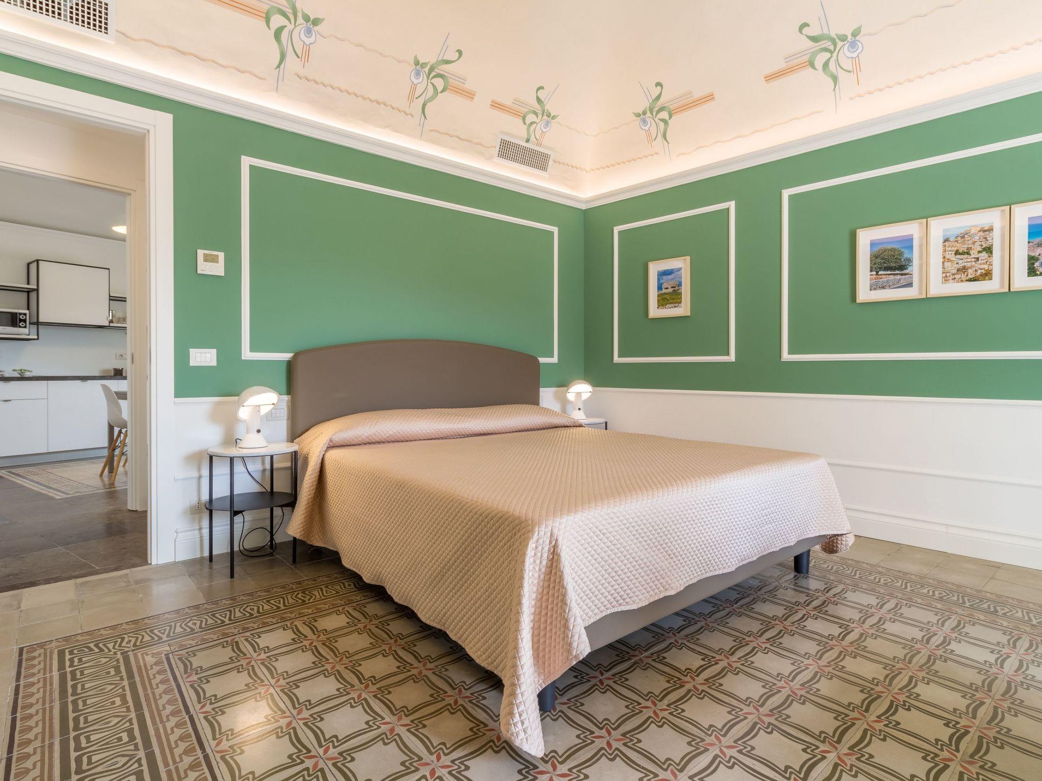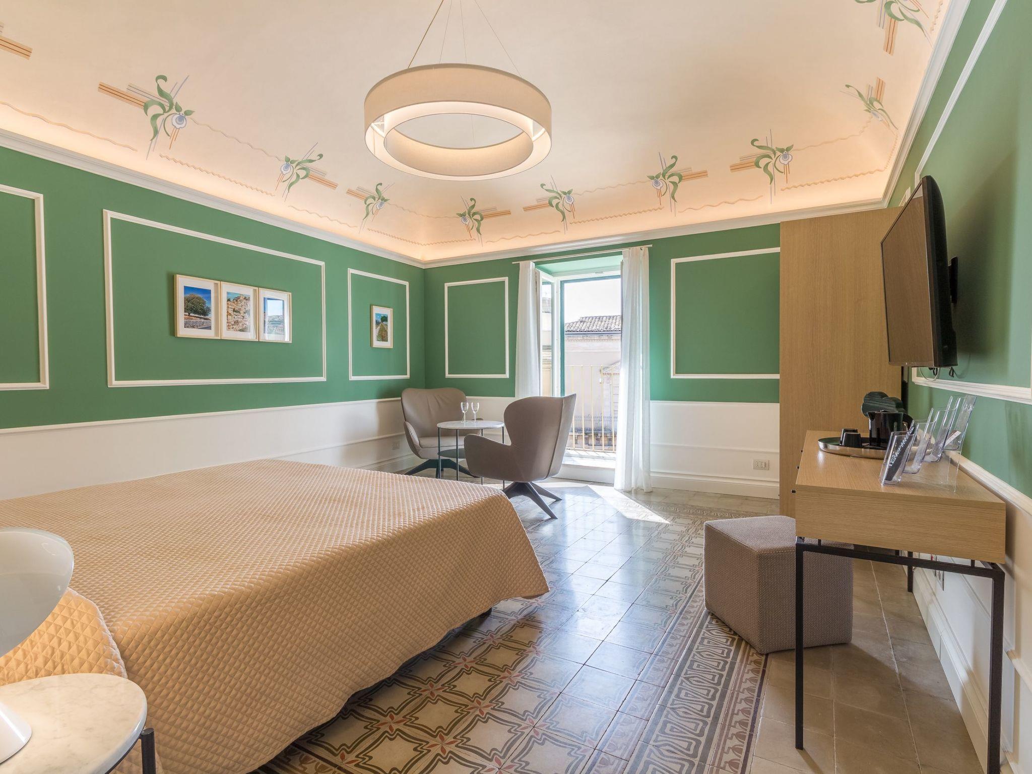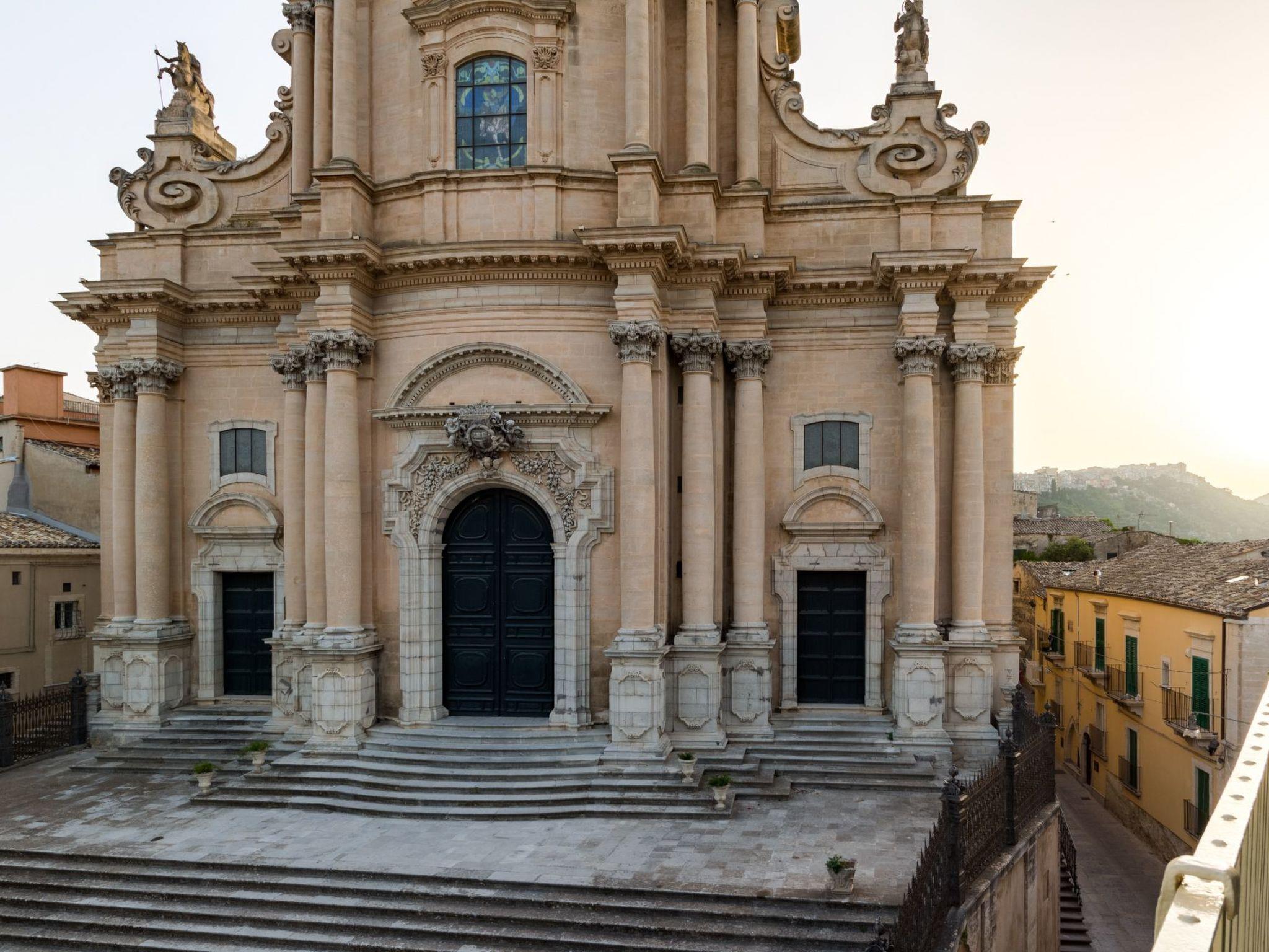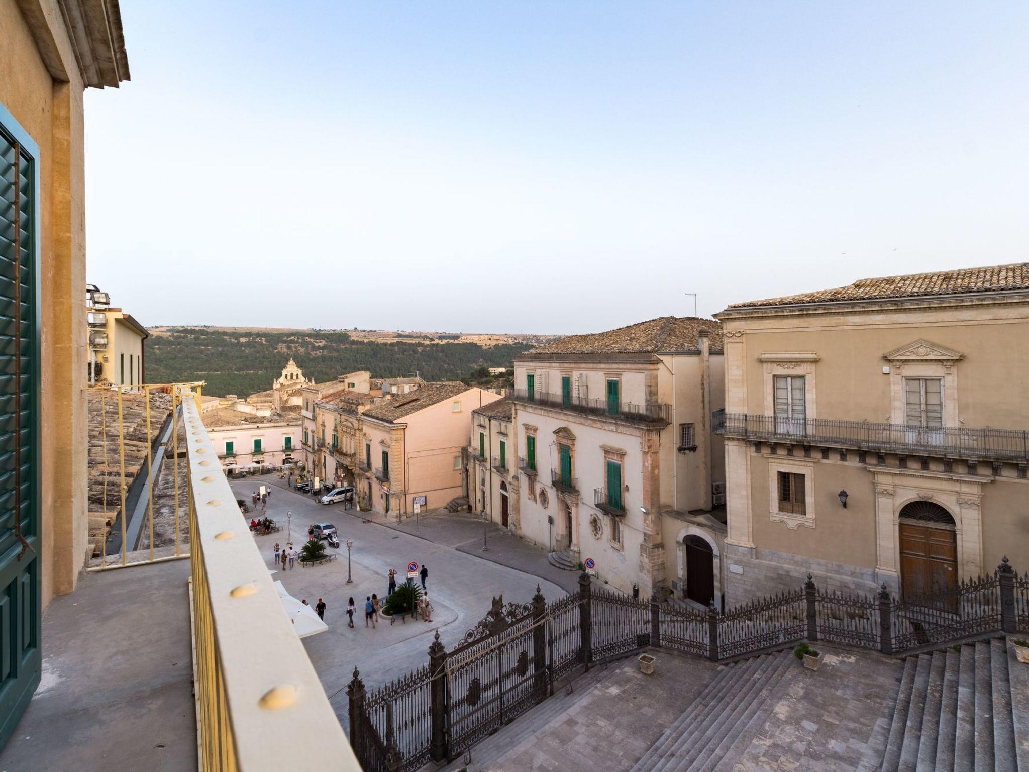 It is located on the second floor of a stately building, facing the famous San Giorgio Cathedral and overlooking Piazza Duomo. It is located in Via Duomo, a street that runs from Piazza della Repubblica to Piazza Duomo, through a picturesque neighborhood of narrow streets, houses and churches. It has a great location for walking around and getting to the shops and restaurants in the center. A short distance away are Modica (15 km), Scicli (25 km), Noto (50 km) and the beaches of Marina di Ragusa (25 km). The Comiso Airport is 23 Km away and the golf courses of the Donnafugata Golf Resort & Spa are 26 km away.