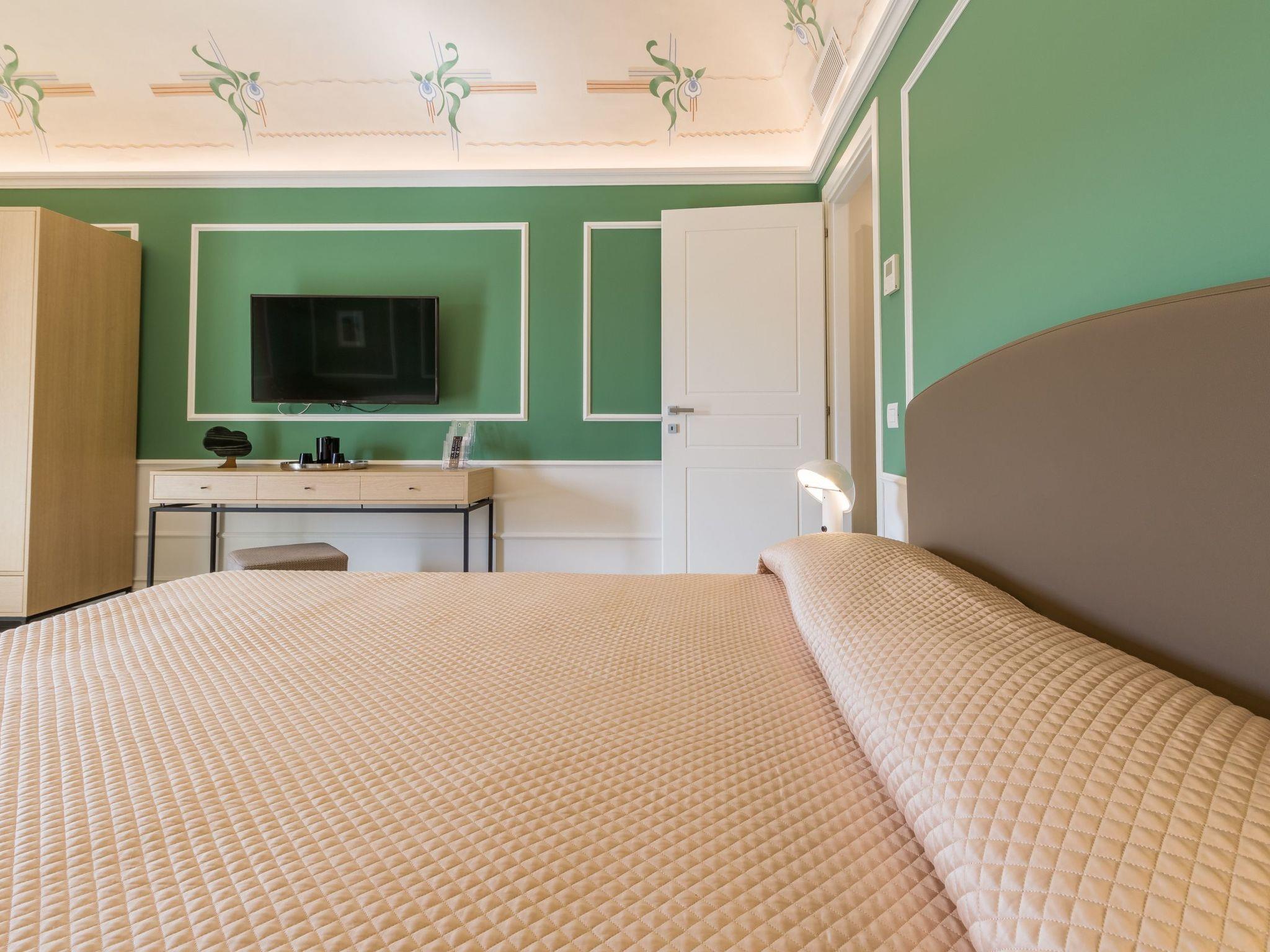 A bedroom, with a beautiful view of the San Giorgio cathedral, with television.