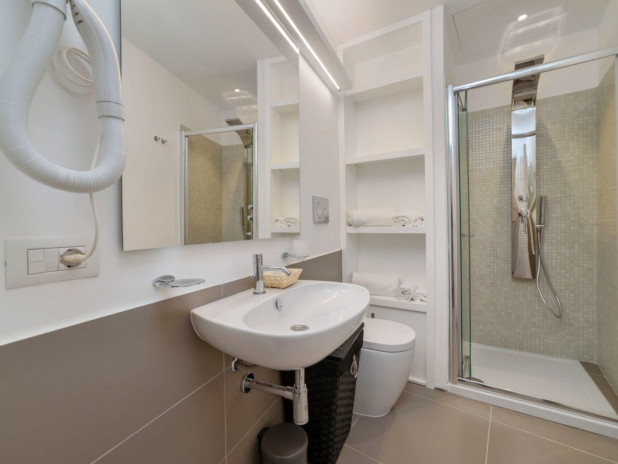 An elegant bathroom with a hydromassage shower.