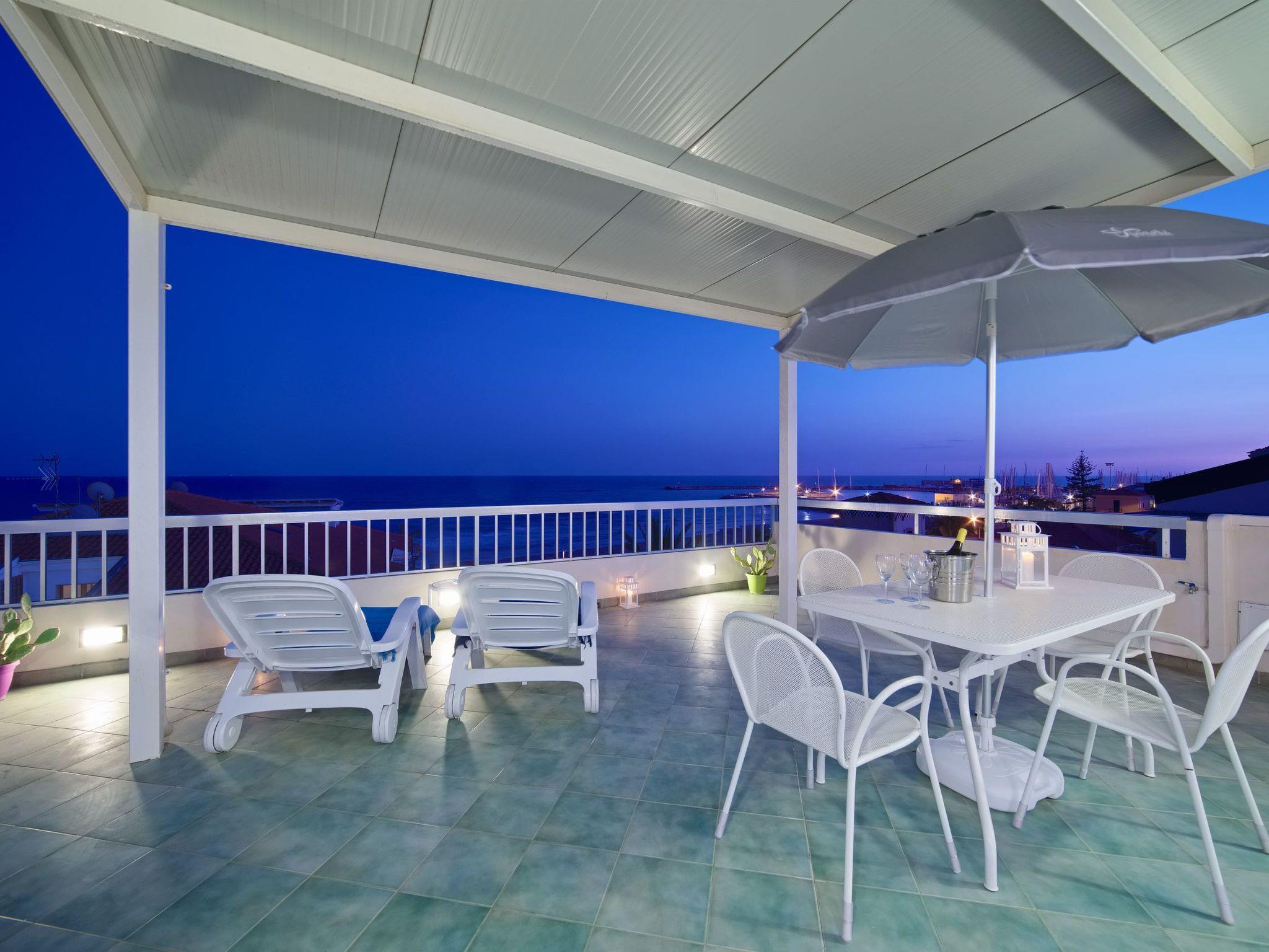 Flat in the centre of Marina di Ragusa, with terrace and splendid view of the sea and the Hyblean coast. Just 100 m from the beach and the Lungomare Mediterraneo, it is 200 m from the main square (Piazza Duca degli Abruzzi). It is ideal for a seaside holiday for couples or families.