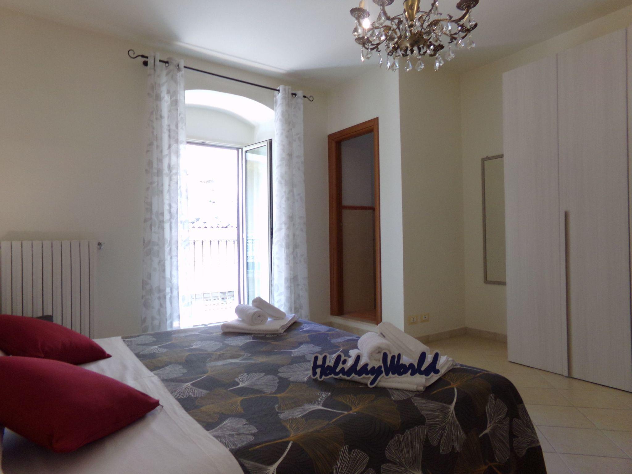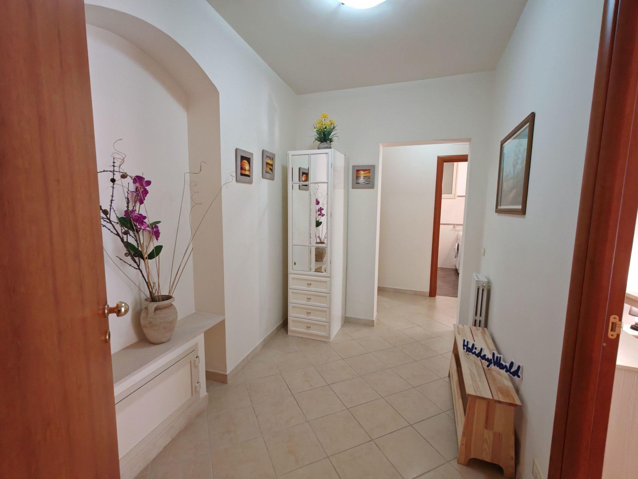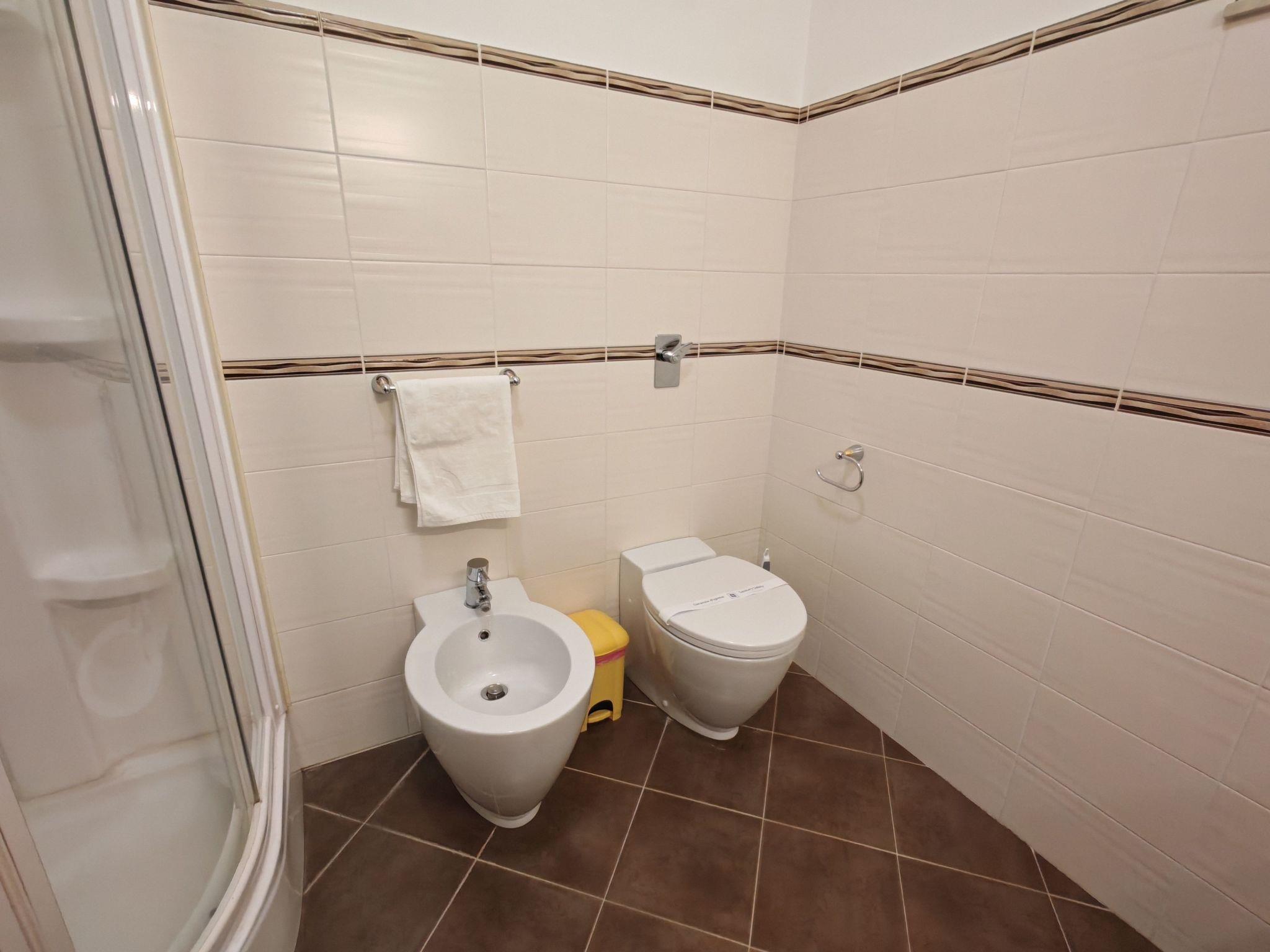 Inside, one is greeted by a comfortable hallway that distributes the various rooms of the house. To the right is the first double bedroom, spacious and bright, with a private en suite bathroom. This room overlooks the street through a lovely little balcony, which provides natural light and a pleasant view of the street. Continuing along the hallway, there is a second double bedroom, also of generous size. This leads to the flat's main bathroom, complete with all amenities and equipped with a modern shower with hydro-massage. To the left of the hallway is the living area, consisting of a dining area with an equipped kitchen, dining table and a comfortable sofa. The kitchen is modern and functional, equipped with a practical induction hob, ideal for efficient and safe cooking. The entire flat has been recently renovated and is in excellent condition. The rooms are tastefully furnished in a modern style, offering a cosy and contemporary atmosphere.