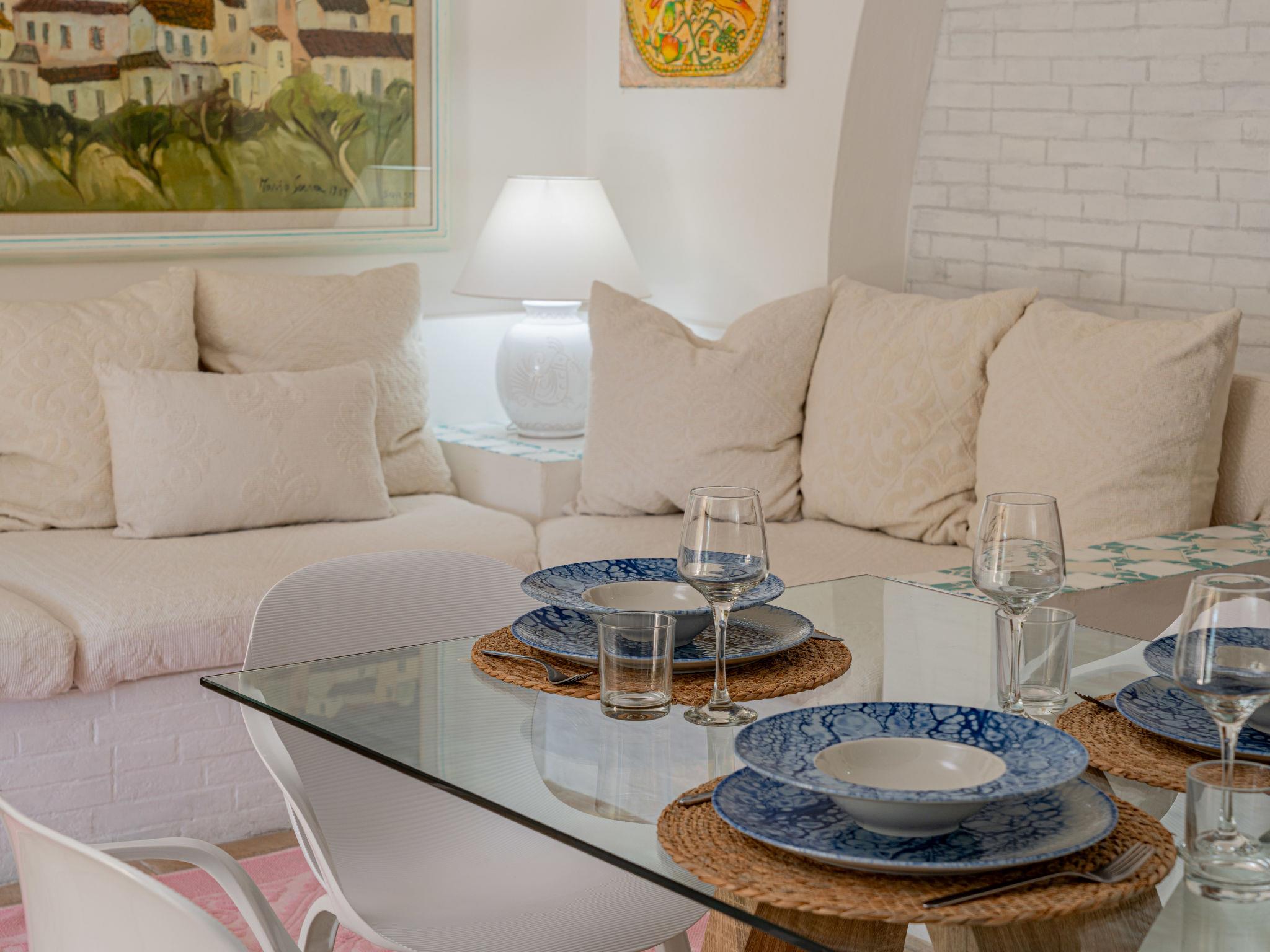 "Desvelos", 3-room apartment 116 m2, on the ground floor. Stylish and cosy furnishings: living/dining room with 1 sofabed and satellite TV (flat screen). Exit to the garden, to the terrace. 2 double bedrooms, each room with shower/bidet/WC. Kitchenette (oven, dishwasher, 4 induction hot plates, toaster, kettle, microwave, electric coffee machine). Air-conditioning, forced-air heating. Large terrace roofed. Terrace furniture, sitting area. Facilities: iron, mosquito net, hair dryer. Internet (WiFi, free). IT090069B4000E8533