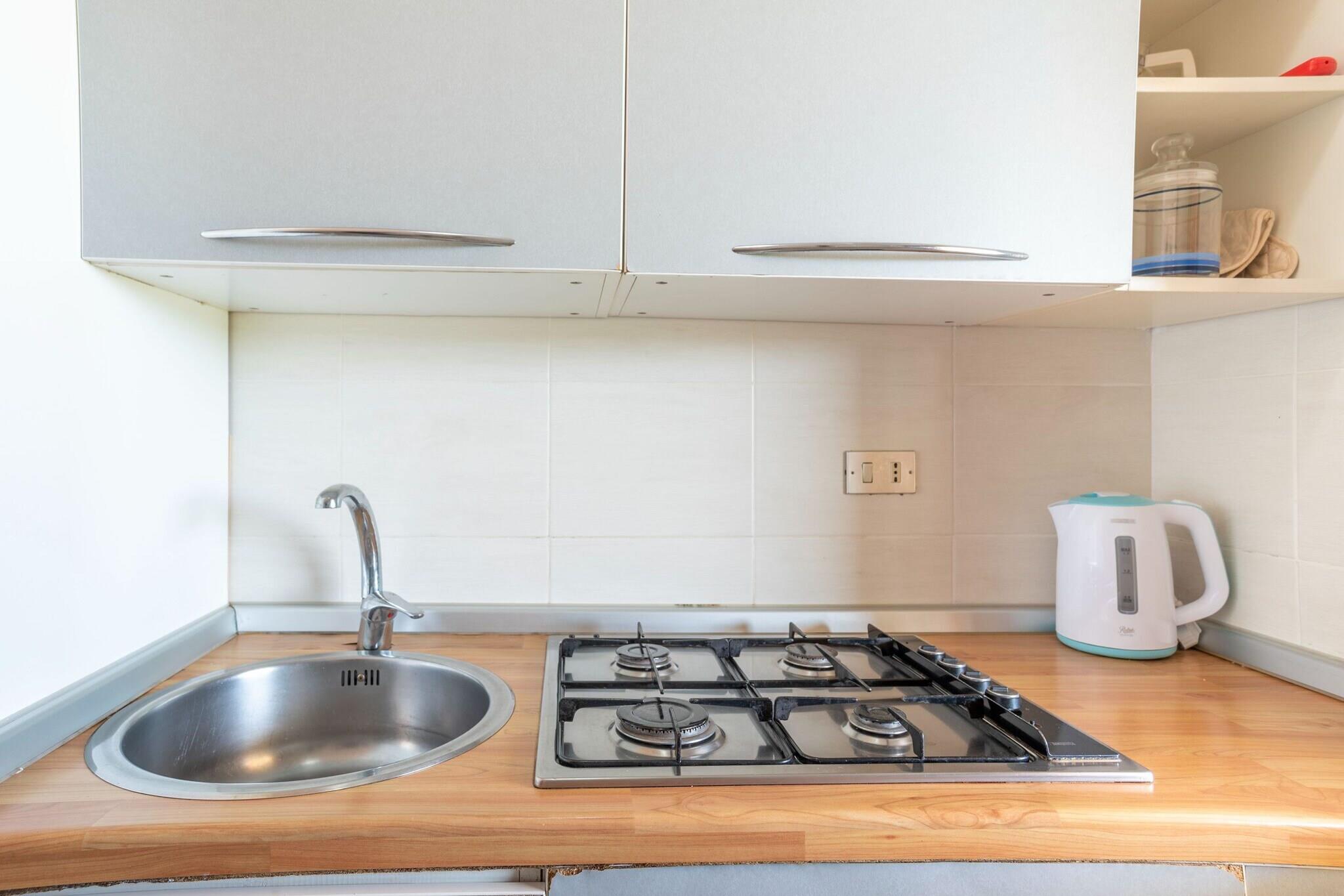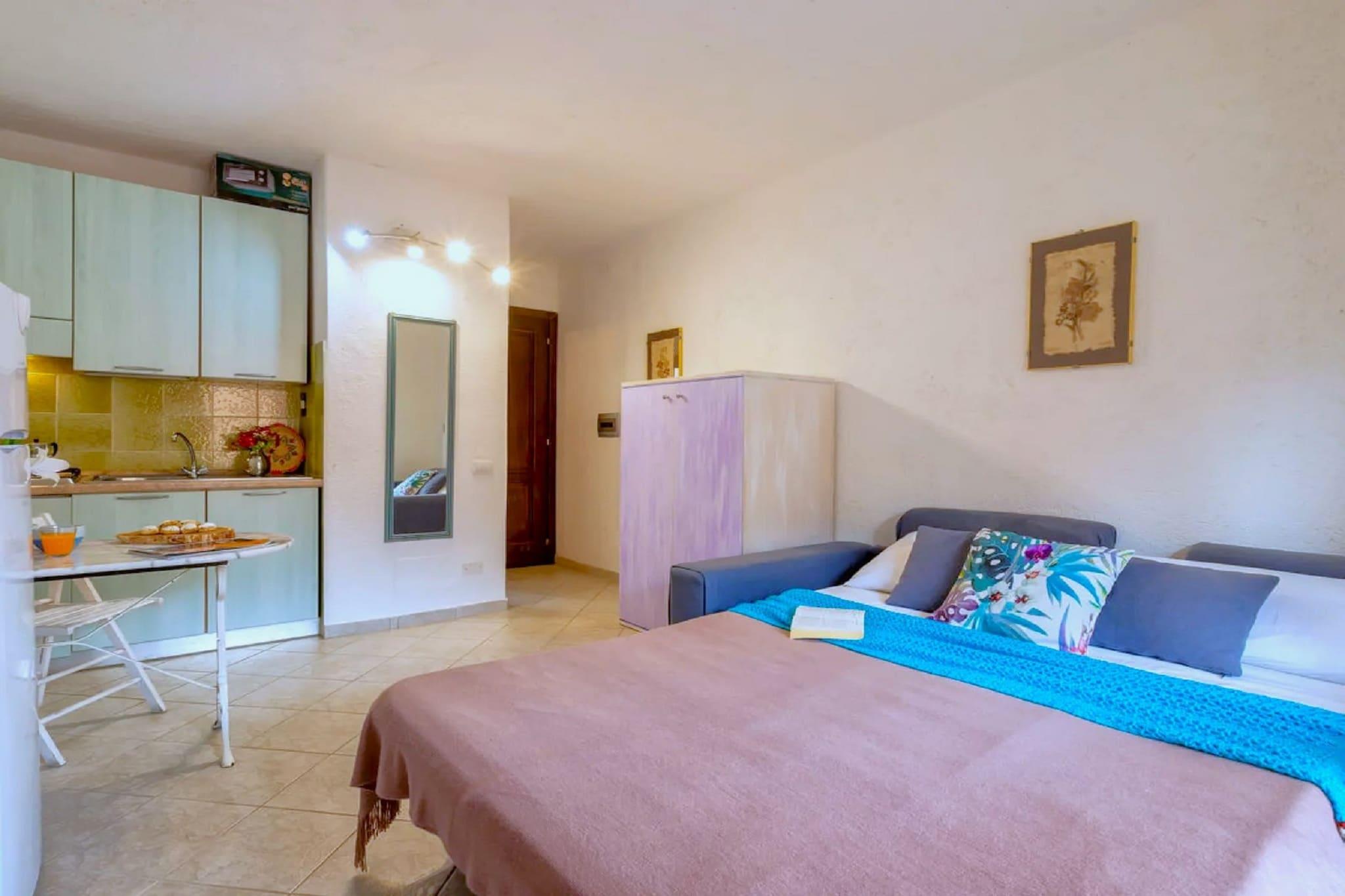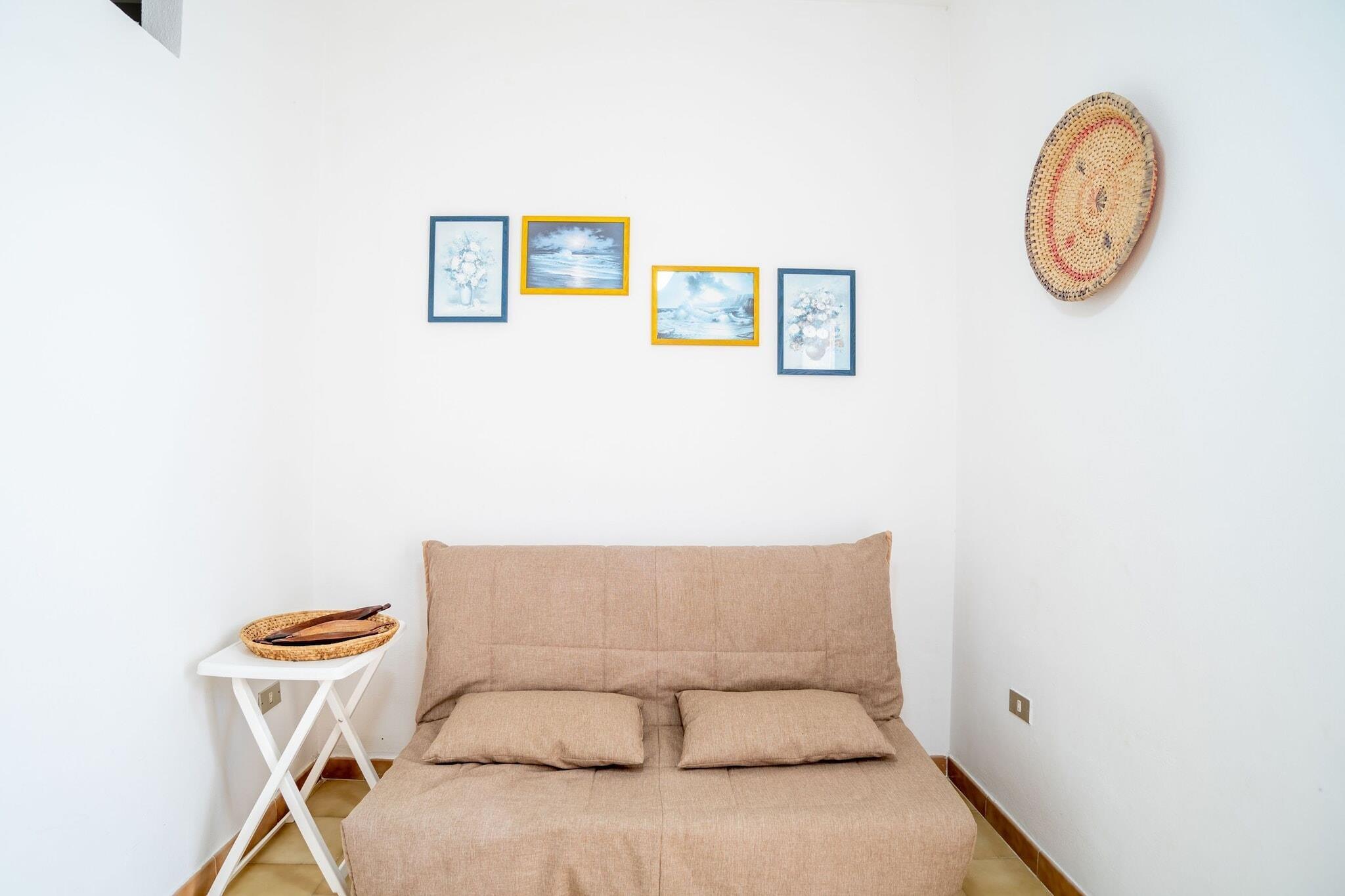 Denne hyggelige lejlighed til to personer er designet til afslappede og ubekymrede ophold og tilbyder et indbydende rum, hvor komfort og enkelhed forenes. Opholdsstuen har et åbent tekøkken udstyret med komfur, køleskab med fryser og alt det nødvendige for at tilberede lette måltider eller nyde en afslappet morgenmad. En komfortabel dobbelt sovesofa, spisebord og tv fuldender rummet og gør det nemt at slappe af efter en dag med udforskning. Badeværelset er pænt arrangeret og veludstyret med bruser, håndvask, toilet og bidet, hvilket sikrer en praktisk og behagelig daglig rutine under hele dit ophold. Denne lejlighed, der ligger i stueetagen med en privat terrasse og indhegnet have, tilbyder et dejligt udendørs hjørne til at slappe af, læse eller nyde den friske luft i fred og ro. For ekstra bekvemmelighed er der parkering til rådighed, og de fleste lejligheder er udstyret med aircondition. Da hver lejlighed er individuelt ejet og møbleret, kan interiøret variere en smule i stil - fra klassisk til enkel og funktionel - men alle opretholder den samme standard for komfort og kvalitet og tilbyder en pålidelig og behagelig ferieoplevelse.