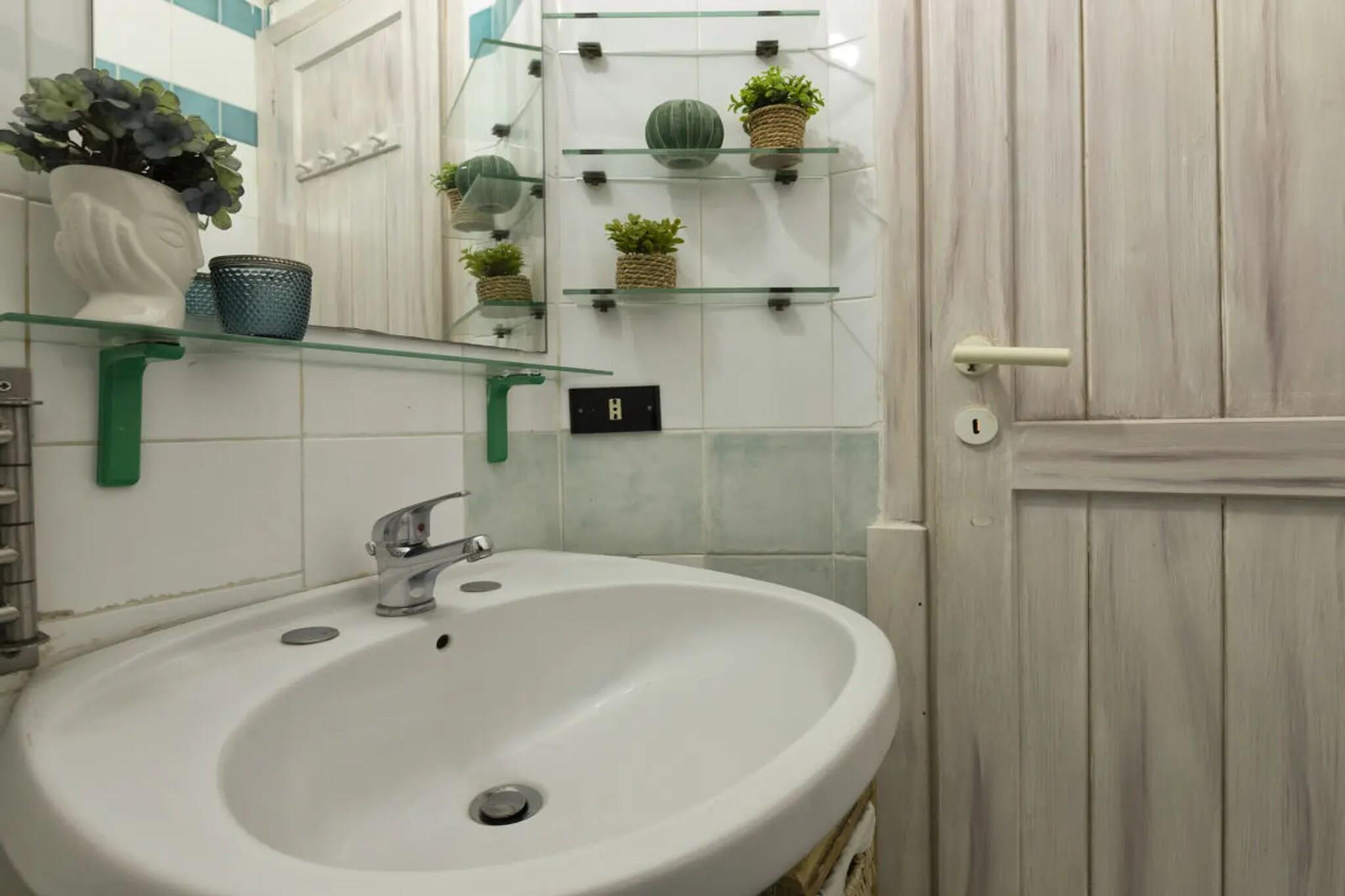 Denne hyggelige lejlighed i stueetagen tilbyder et behageligt ophold med alt det nødvendige for en afslappende ferie. Det åbne køkken er fuldt udstyret med komfur, køleskab med fryser og alle de nødvendige redskaber til at tilberede måltider. Lejligheden indeholder et lille soveværelse (8 m²) med en dobbeltseng (140 x 190 cm), perfekt til en god nats søvn. Badeværelset er veludstyret med bruser, håndvask, toilet og bidet og en vaskemaskine, hvilket sikrer en bekvem og behagelig oplevelse under dit ophold. Udenfor kan du nyde en stor terrasse, ideel til at slappe af eller spise udendørs. Haven byder på et fredeligt tilflugtssted, og parkering er tilgængelig for din bekvemmelighed. Yderligere faciliteter inkluderer aircondition, hvilket gør denne lejlighed til et godt valg for familier, der leder efter komfort og fredelige omgivelser kun få meter fra stranden.