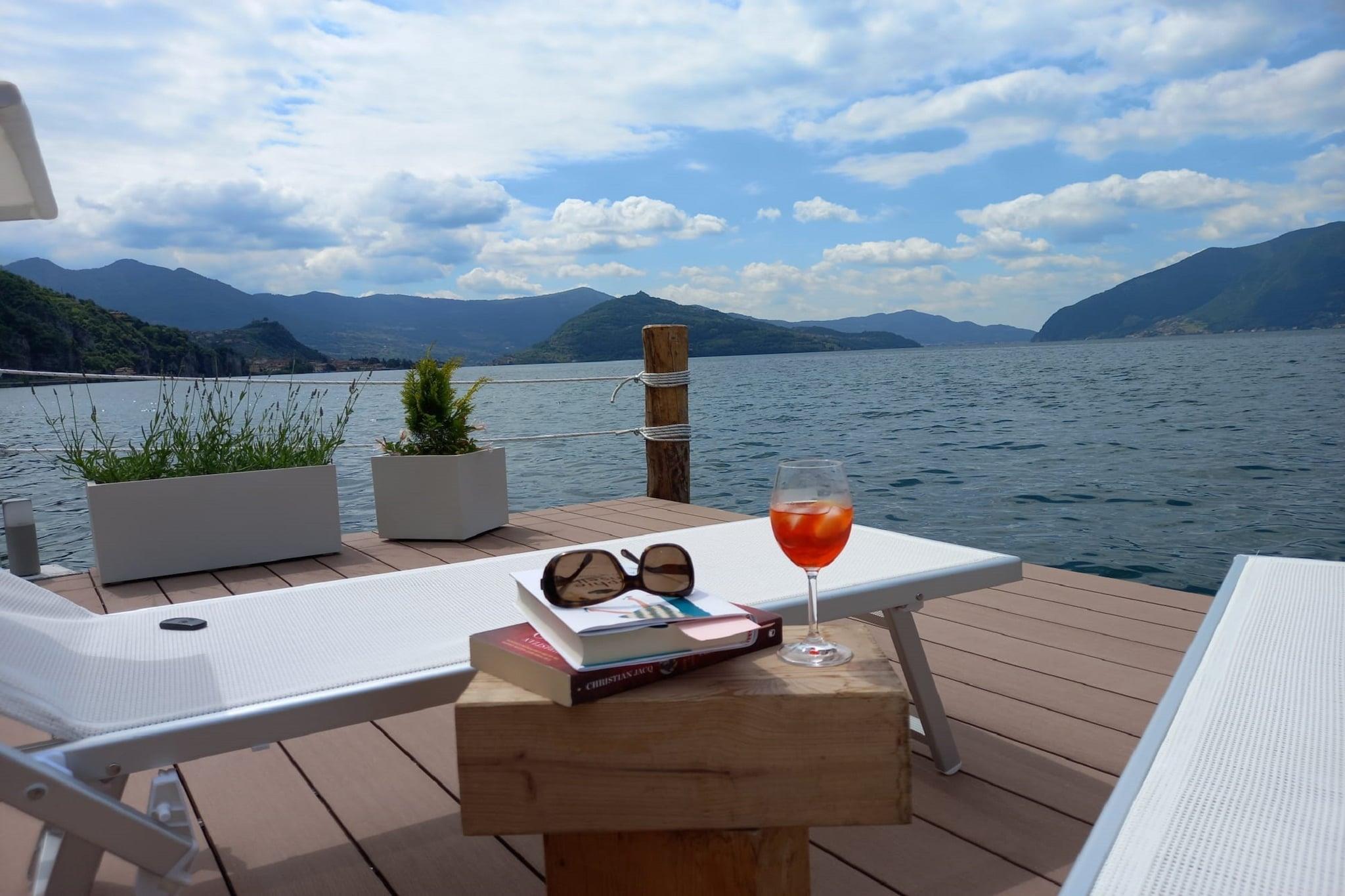 Vågn op til panoramaudsigt over søen og bjergene i denne fredelige lejlighed på anden sal i Vello di Marone. Med en privat balkon med udsigt over Iseo-søen, aircondition og varme, er det en hyggelig tilflugtssted i hver sæson. Det åbne opholdsrum er fyldt med naturligt lys, perfekt til at slappe af efter en dag med udforskning. Kun 300 meter fra en have ved søen kan du nyde solbadning eller en stille læsning ved vandet. Beliggende kun 200 meter fra Iseosøens kant, tilbyder lejligheden nem adgang til vandrestier, kajaksejlads og naturskønne picnics. Gå en tur 300 meter ind i den charmerende landsby Vello for en betagende udsigt og en rolig atmosfære, eller tag 1 km til Marone for shopping, caféer og lokale seværdigheder. Dagsture til Milano, Comosøen og Gardasøens Scaligero Slot tilbyder mindeværdige kulturelle udflugter i nærheden. Nyd lokale smagsoplevelser på Trattoria Glisenti, beliggende lige ved søen, eller nyd frisk pasta og vin på Ristorante La Baia. For rustik charme, prøv Osteria Spirito Divino i Marone. Uanset om du planlægger en romantisk flugt eller en stille ferie i naturen, tilbyder denne lejlighed ved søen en fredfyldt base for at opdage det bedste af Lombardiets landskab, smag og kultur.