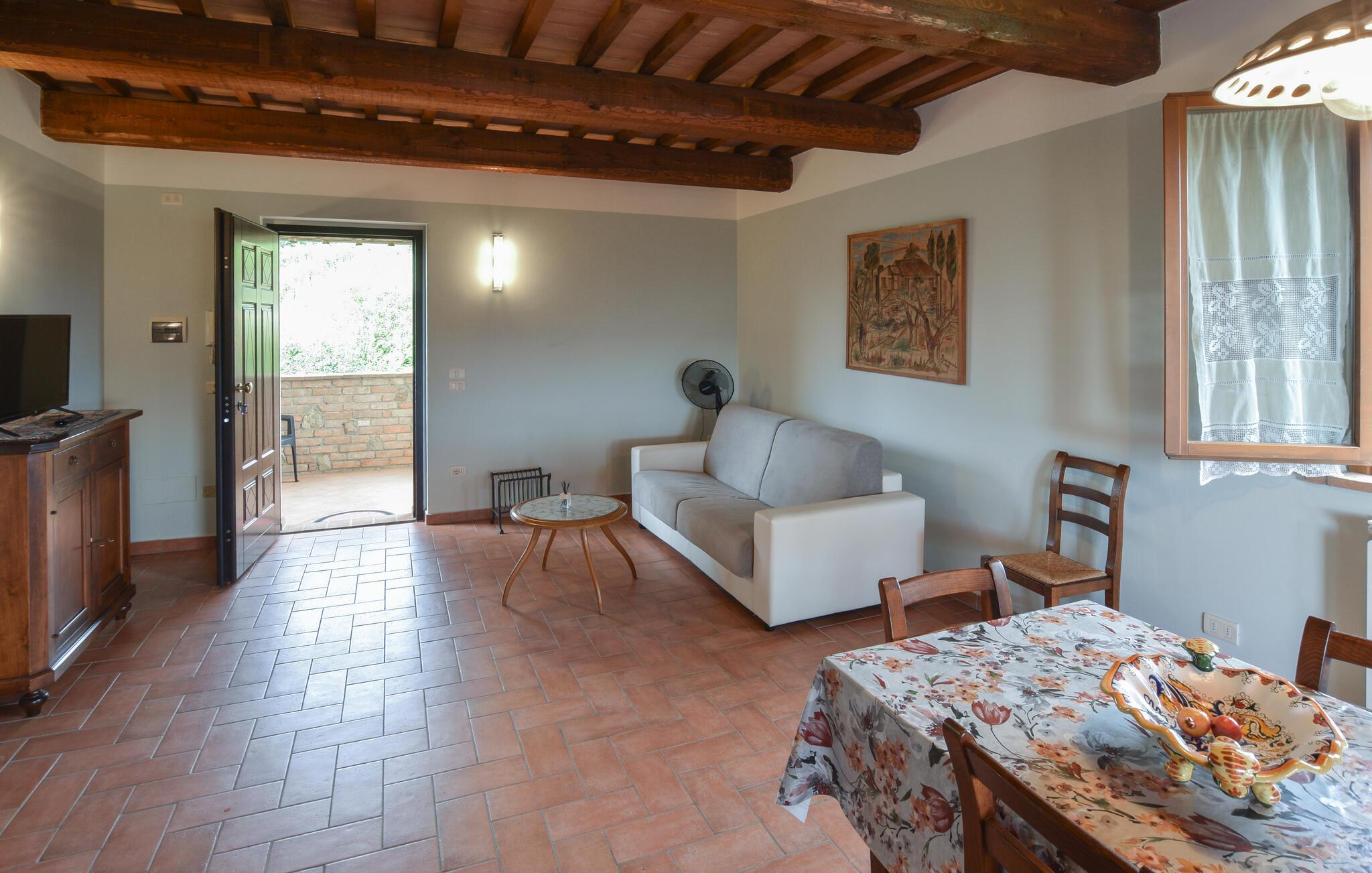 Huset er blevet renoveret og opdelt i fire rummelige lejligheder (IUP758, IUP759 og IUP761), der også kan lejes samlet med i alt 16 sovepladser under IUP773. Nyd de rolige omgivelser og panoramaudsigten over landskaberne. Til gæsternes fælles brug er der en dejlig swimmingpool. Bolig: Første sal (80 m²) byder på en rummelig (spise-)stue med tv og en privat trappe ned til et grønt område på ca. 200 m², køkkenhjørne, dobbeltværelse med badeværelse med brusebad (vaskemaskine).
