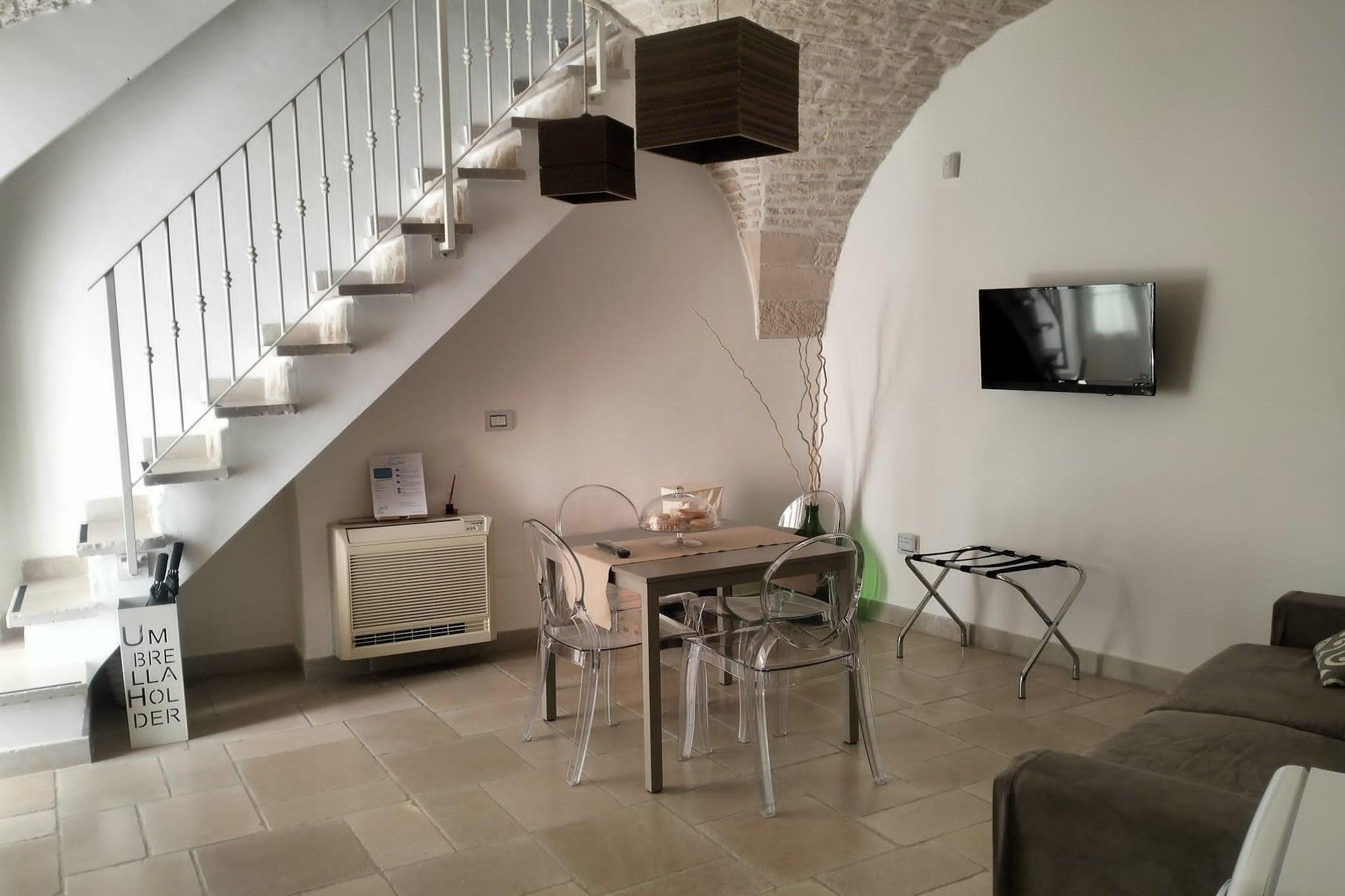 Et varmt og stilfuldt ophold Denne lejlighed ligger kun få skridt fra det historiske centrum og blander karakter og komfort med sin private terrasse og smagfuldt designede interiør. Opholdsstuen åbner op til et veludstyret køkken med espressomaskine og kogende vandhane for ekstra bekvemmelighed. Terrassen tilbyder en hyggelig krog til afslapning med et glas vin eller en afslappet morgenmad. Med aircondition og varme er dette hjem ideelt til ferier året rundt, og dine kæledyr er også varmt velkomne. Barok skønhed og kæledyrsvenlige eventyr Martina Franca er berømt for sin fantastiske barokarkitektur, charmerende gyder og kulturelle rigdom. Besøg den slående Basilica di San Martino og det elegante Palazzo Ducale i nærheden. Hvis du rejser med kæledyr, så tag til Parco Via Papa Leone XIII eller Pineta Comunale, begge dejlige grønne områder til en gåtur eller leg. Til dagsture ligger det gyldne sand ved Ostuni Marina lidt over 20 km væk og tilbyder områder, hvor kæledyr er tilgængelige, til en forfriskende ferie ved havet. Snacks, snacks og lokale lækkerier Lige rundt om hjørnet tilbyder Latteria del Ringo og 37 Music Art Cafè kaffe med et lokalt præg og en venlig atmosfære. For autentiske puglianske smagsoplevelser kan du prøve Trattoria La Tana eller Gaonas Officine del Gusto, begge inden for gåafstand og kendt for deres solide retter og kæledyrsvenlige terrasser. Med friske lokale råvarer og hyggelige atmosfærer gør Martina Franca hvert måltid til en hyldest til det syditalienske køkken.