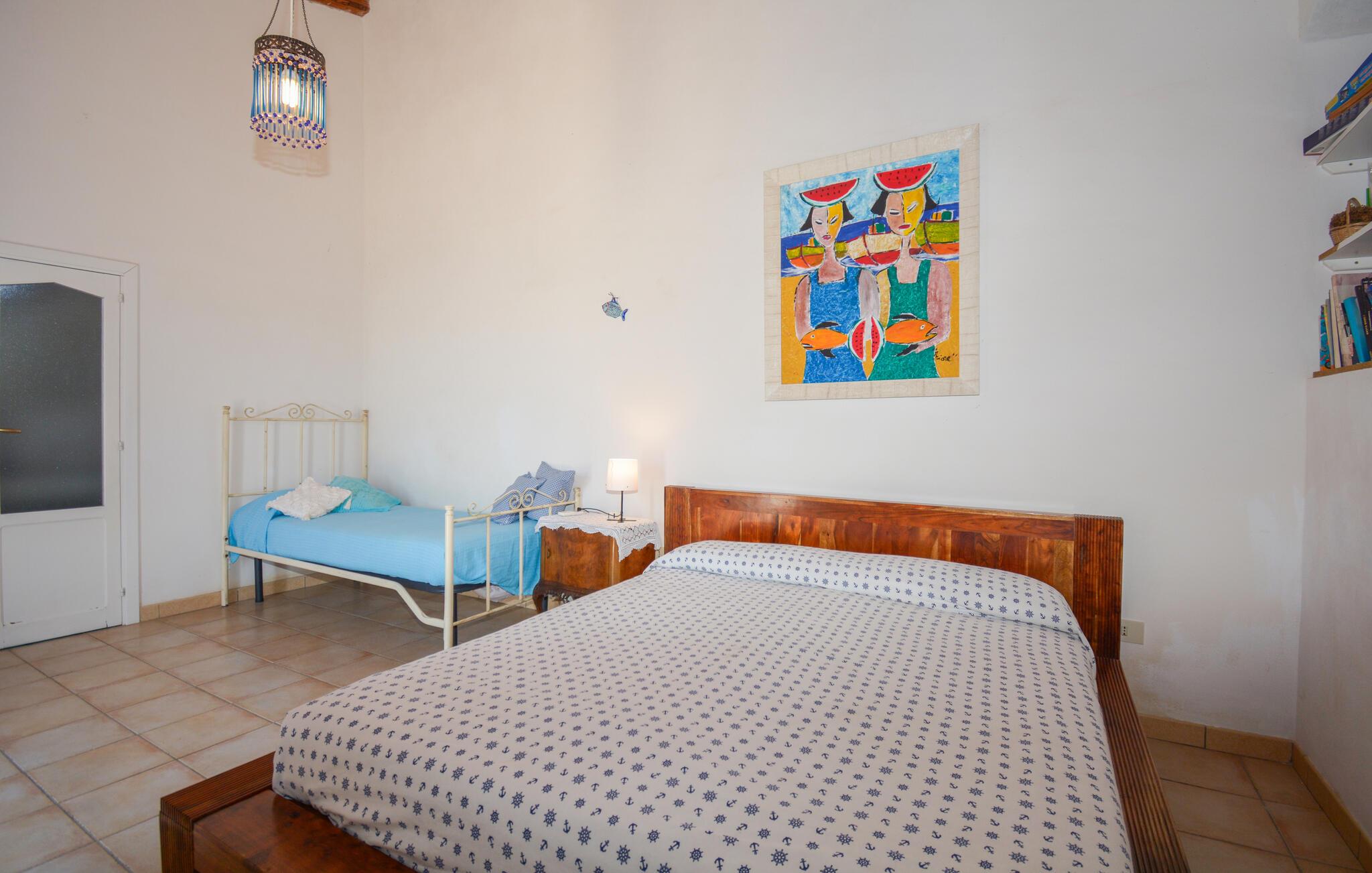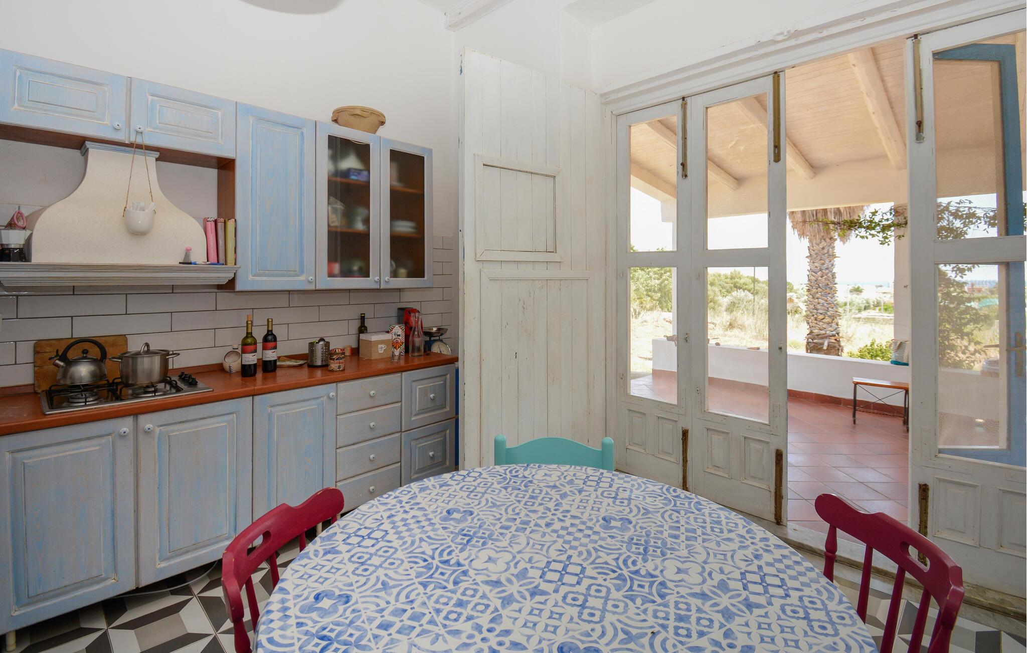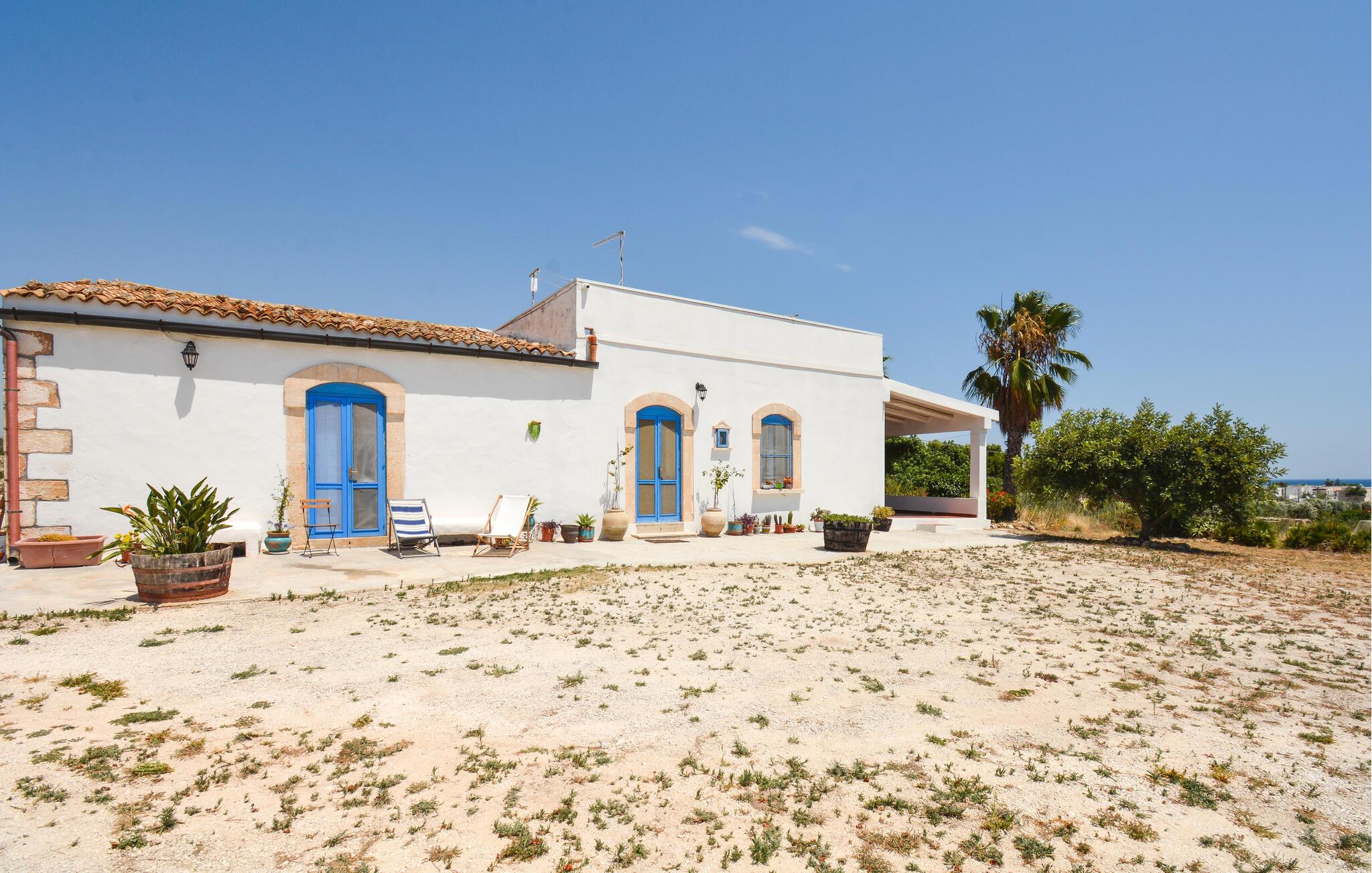 Tilbring en oplevelsesrig ferie i dette rummelige feriehus med havudsigt. Beliggende på en vidtstrakt naturgrund kan I tilbringe hyggelige dage med venner eller familie i dette rummelige feriehus. Fremtryll lækre pastaretter med friske råvarer fra markedet, og planlæg jeres aktiviteter til hyggelige måltider. Efter en lang dag kan I samles til en spilleaften eller fordybe jer i jeres yndlingssted med jeres ferielæsning. I den store, indhegnede have kan jeres børn legende udforske naturen, mens I dækker bord til stemningsfulde måltider på verandaen. Tænd op i grillen og snak over vin og stearinlys i den varme sommernat. Udforsk de charmerende gyder i Marzamemi, prøv frisk fisk i havnen, og beundr solnedgangen på de smukke sandstrande i San Lorenzo eller Calamosche. Bliv fortryllet af den storslåede arkitektur i barokken Noto, gå en tur gennem naturreservatet Vendicari, og besøg den antikke by Syracuse med dets imponerende græske teater.