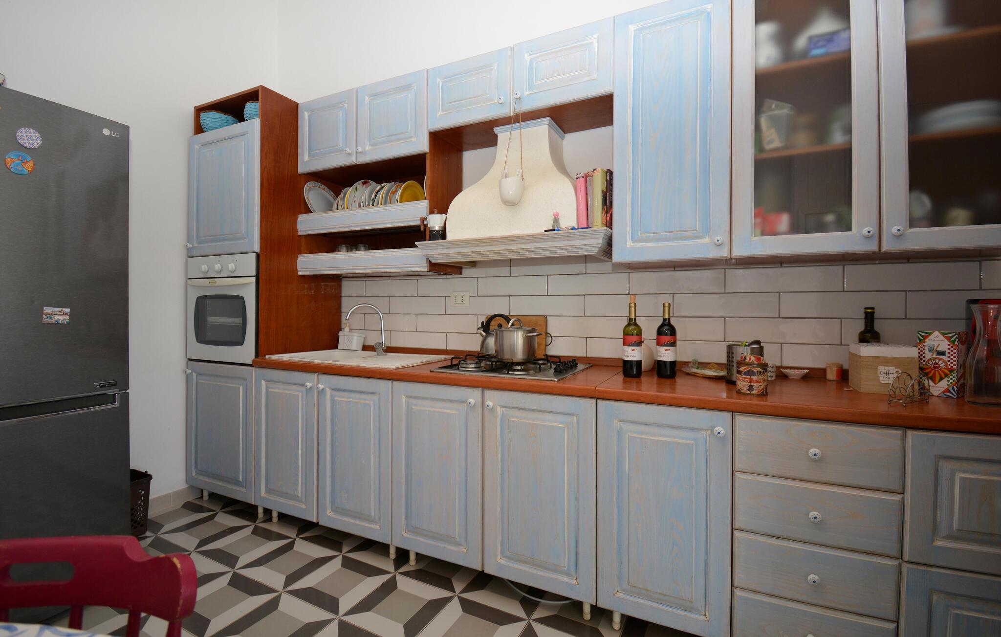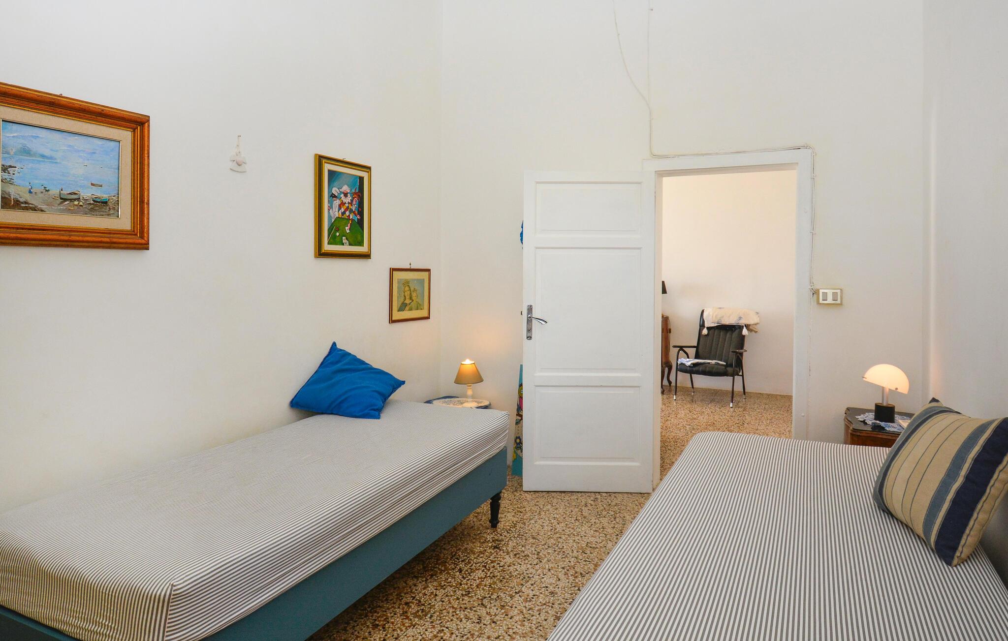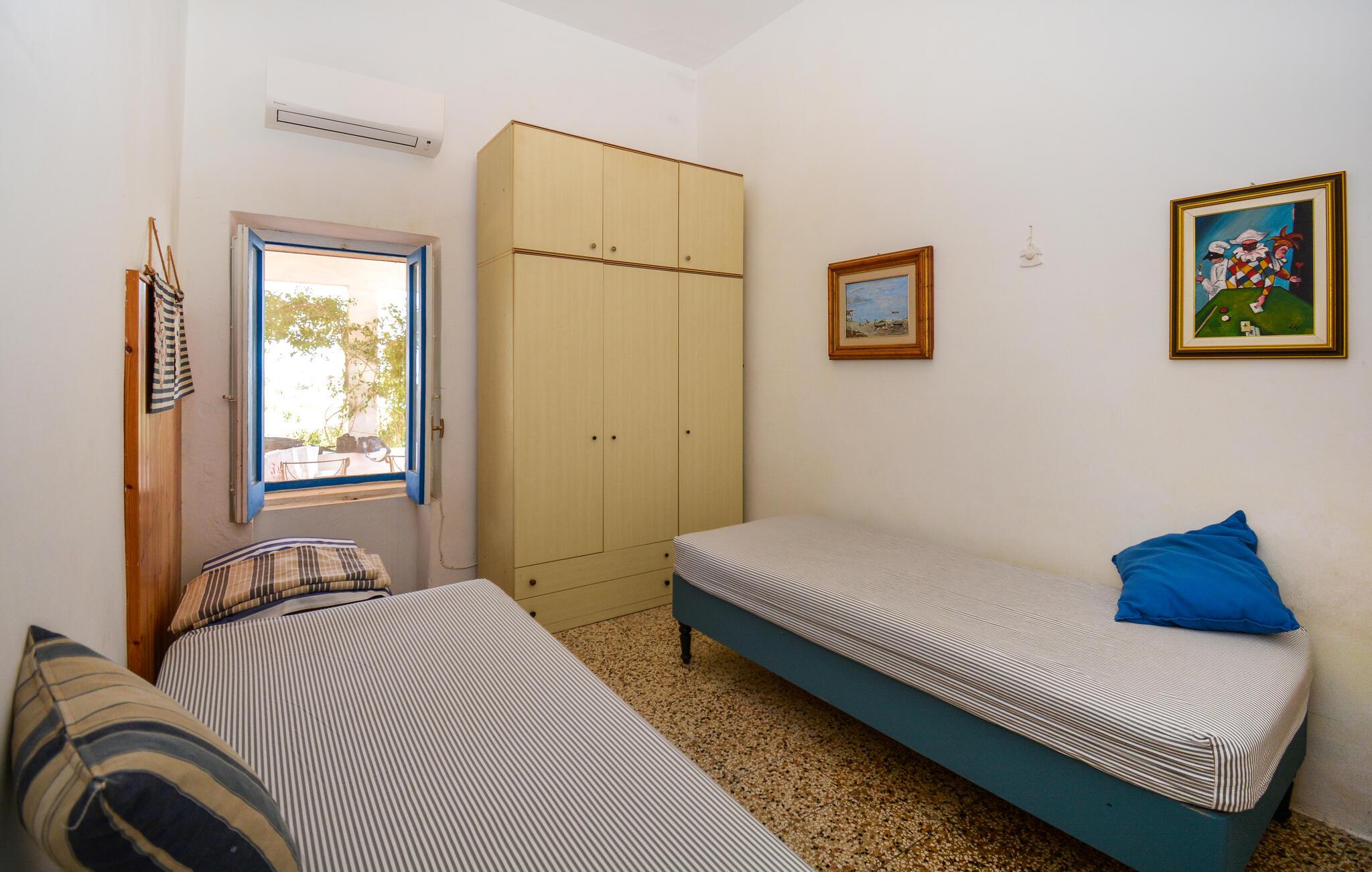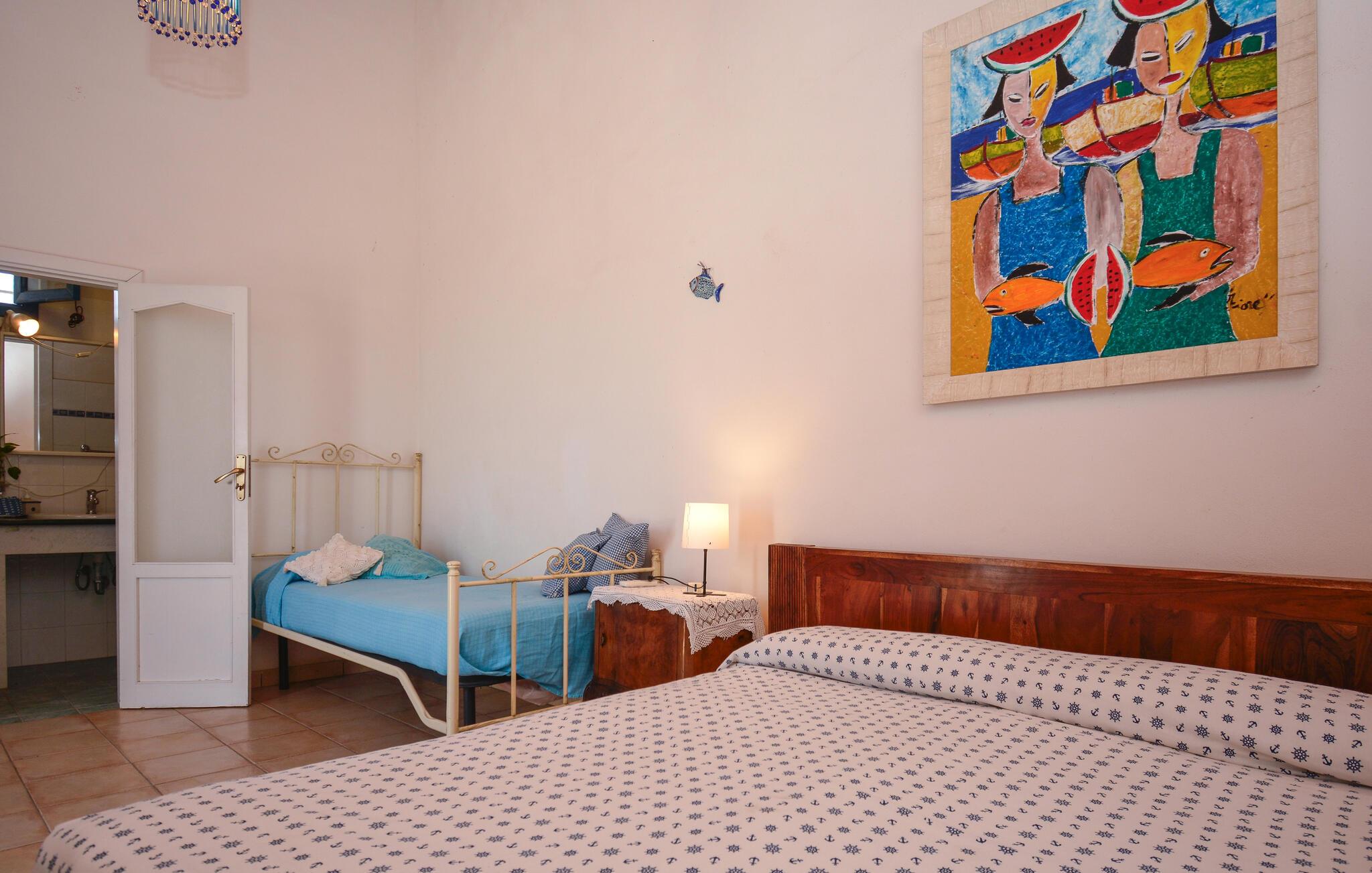 Tilbring en oplevelsesrig ferie i dette rummelige feriehus med havudsigt. Beliggende på en vidtstrakt naturgrund kan I tilbringe hyggelige dage med venner eller familie i dette rummelige feriehus. Fremtryll lækre pastaretter med friske råvarer fra markedet, og planlæg jeres aktiviteter til hyggelige måltider. Efter en lang dag kan I samles til en spilleaften eller fordybe jer i jeres yndlingssted med jeres ferielæsning. I den store, indhegnede have kan jeres børn legende udforske naturen, mens I dækker bord til stemningsfulde måltider på verandaen. Tænd op i grillen og snak over vin og stearinlys i den varme sommernat. Udforsk de charmerende gyder i Marzamemi, prøv frisk fisk i havnen, og beundr solnedgangen på de smukke sandstrande i San Lorenzo eller Calamosche. Bliv fortryllet af den storslåede arkitektur i barokken Noto, gå en tur gennem naturreservatet Vendicari, og besøg den antikke by Syracuse med dets imponerende græske teater.