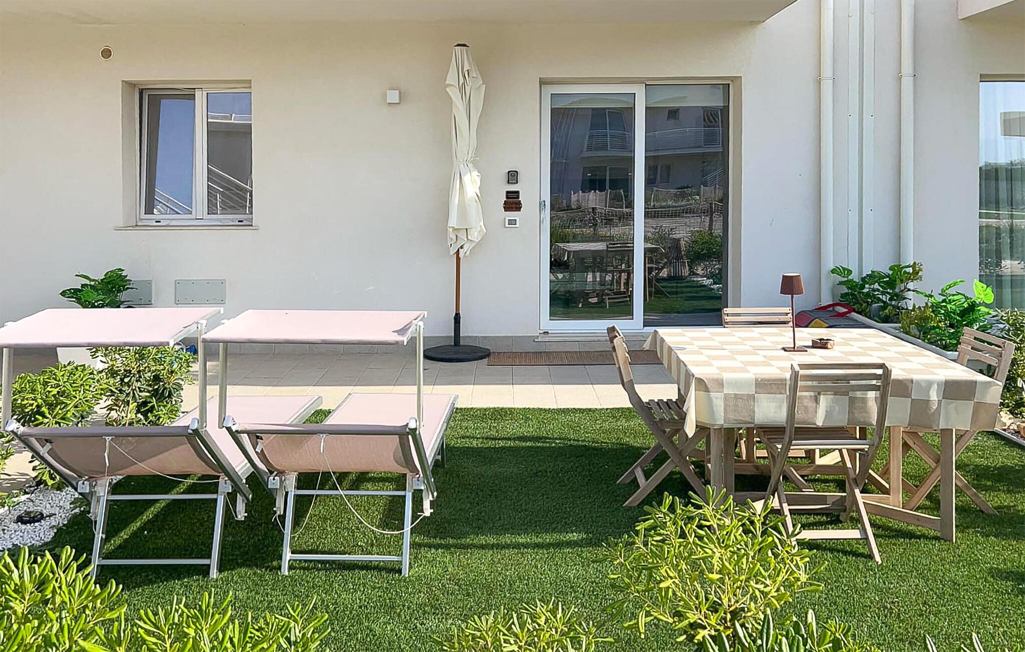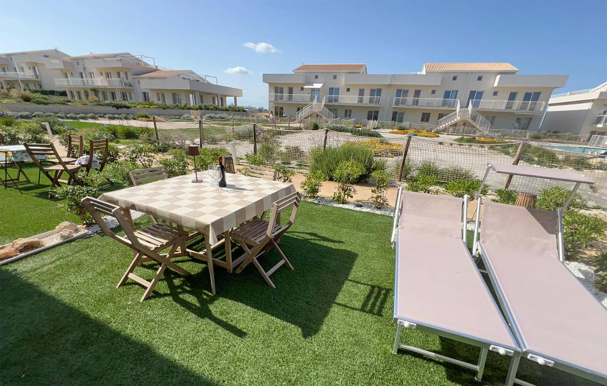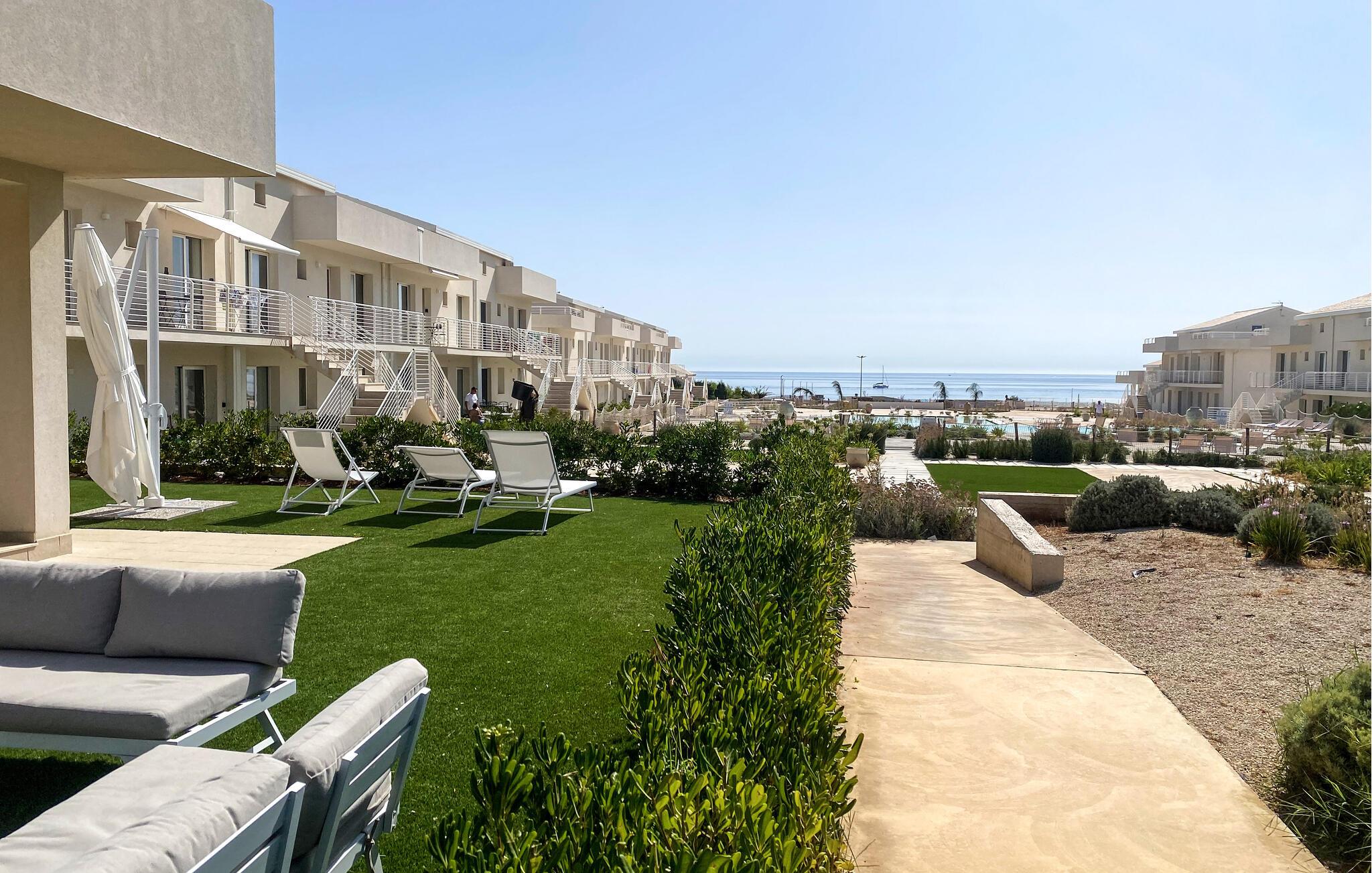 Forkæl jer selv med en afslappende ferie i denne komfortable ferielejlighed nær stranden og med adgang til den fælles pool. Nyd afslappende dage i denne lejlighed, der tilbyder de ideelle rammer for en afslappende ferie. Den komfortable sofa, tv'et og det praktiske køkken skaber en behagelig atmosfære, hvor I straks vil føle jer hjemme. Start dagen med en duftende kaffe eller tryl et lækkert måltid sammen, måske ledsaget af et glas italiensk vin. Nyd morgenmad, aftensmad eller afslappende timer i solen på den grønne terrasse. Herfra kan I nyde en vidunderlig udsigt over vandet. Den fælles pool giver en forfriskende dukkert i solen. Der er en legeplads for børn på komplekset, og I kan også benytte et fitnessrum, beachvolley og en grill sammen med andre gæster. Svøm i det turkisblå hav og nyd de fine sandstrande omkring Marzamemi. Slentr gennem den charmerende fiskerlandsby med dens historiske torve, små butikker og hyggelige restauranter. Tag en tur til den nærliggende by Porto Palo di Capo Passero, hvor I kan opleve Siciliens sydligste spids med dens imponerende fæstning. Oplev de omkringliggende naturreservater, som kan prale af uberørte kystlandskaber og et mangfoldigt dyreliv.