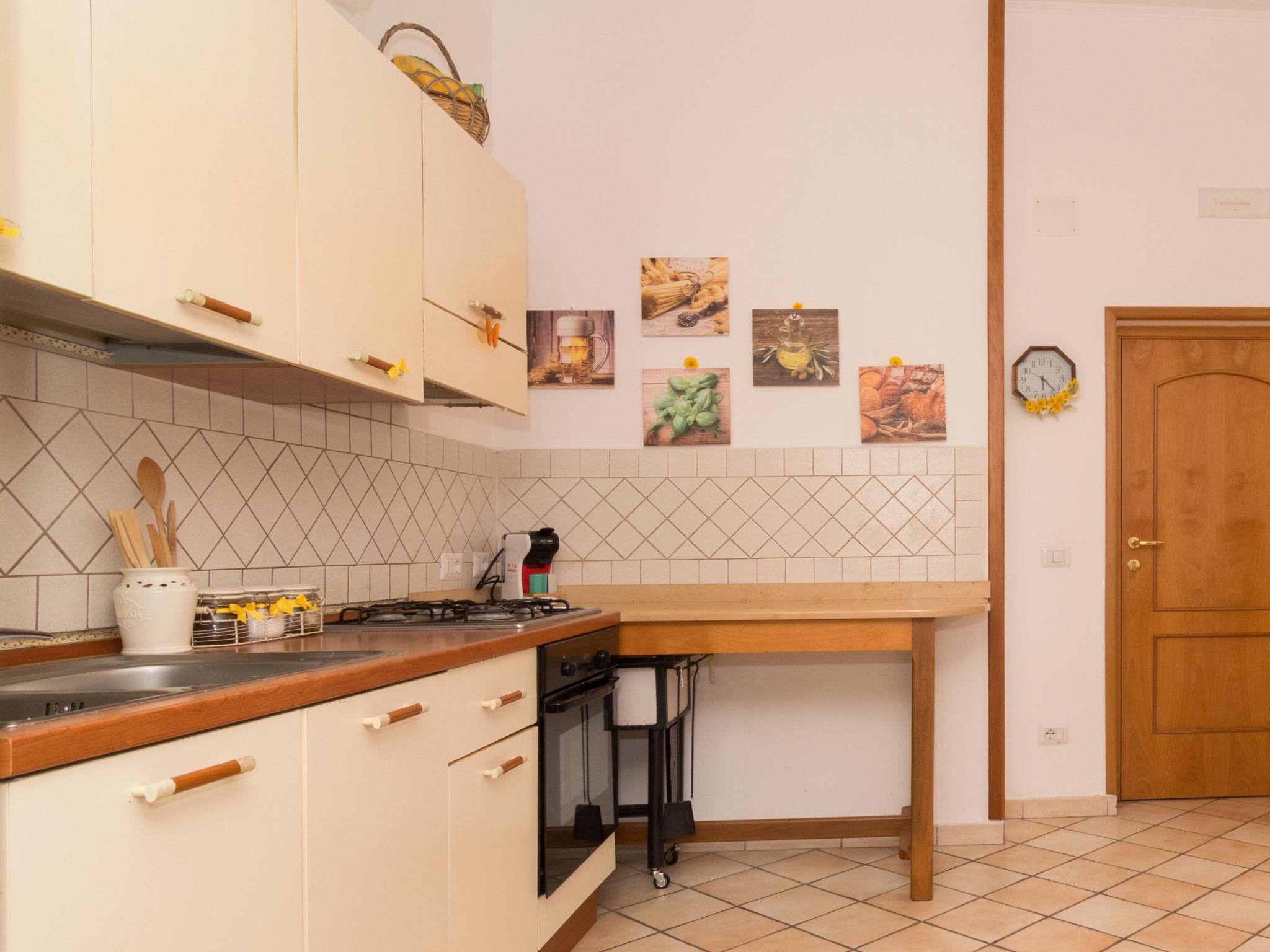 2-room apartment 40 m2 on 2nd floor. Bright, simple and practical furnishings: dining room with dining table and kitchen corner. Exit to the balcony. 1 double bedroom. Exit to the balcony. Kitchenette (oven, dishwasher, 4 gas rings, kettle, microwave, electric coffee machine). Shower/WC. Air-conditioning, forced-air heating. Heating available only from 01.11. to 31.03. 2 small balconies, terrace. Balcony furniture, deck chairs. Beautiful distant view of the sea, the countryside and the resort. Facilities: washing machine, hair dryer. IT063044C2I3UPV95W