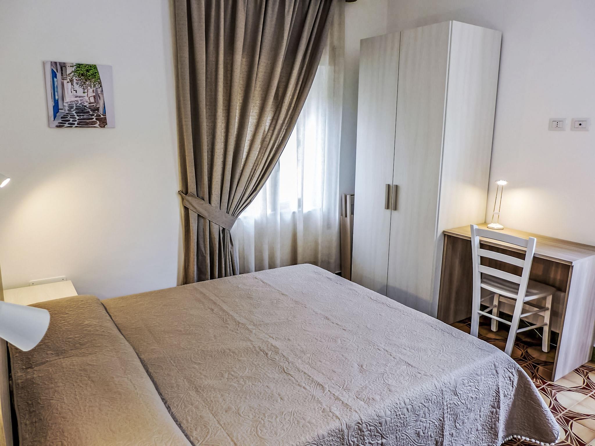 1-room house 30 m2, on the ground floor. Fully renovated in 2018, simple and practical furnishings: 1 double bedroom with air conditioning and forced-air heating. Exit to the patio. Small kitchen (2 hot plates, microwave, electric coffee machine) with small dining table. Shower/bidet/WC. Air-conditioning, forced-air heating. Heating available only from 01.11. to 31.03. Small patio 10 m2. Terrace furniture, barbecue, deck chairs (2). Facilities: hair dryer. Internet (WiFi, free). Parking (1 car) at the house. Please note: fridge without freezer. 1 small pet/ dog allowed. IT063044C2KNHM745V