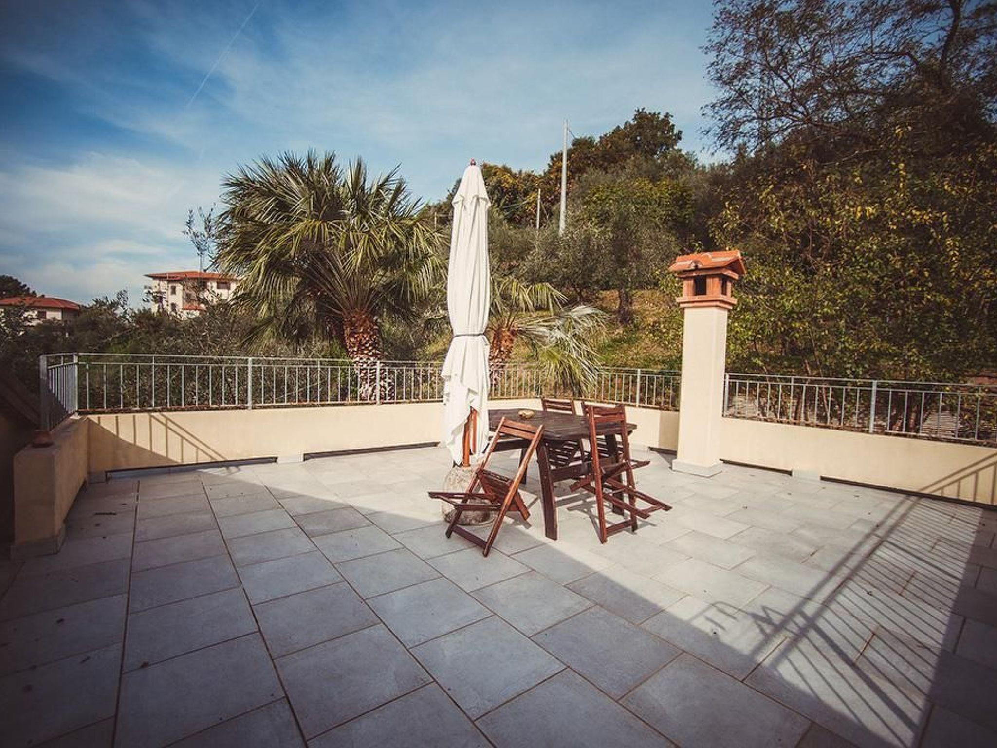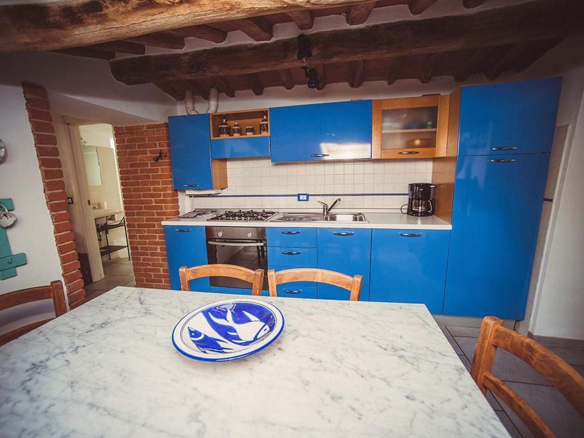 Two communicating double rooms (one bed 160x190 cm and the other 140x190 cm), small living room with single bed, kitchen-diner (oven, fridge with freezer, dishwasher, American coffee machine), bathroom with shower.