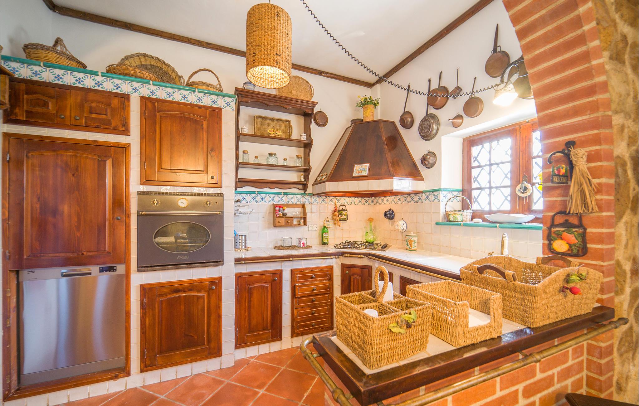 Der venter jer en særlig og mindeværdig boligoplevelse i dette skønne feriehus. Indretningen matcher det autentiske ydre med højt til loftet, synlige træbjælker og fritlagt murværk. Fyr op i brændeovnen på de køligere dage og hyg jer med brætspil eller hver jeres bog efter en aktiv feriedag.