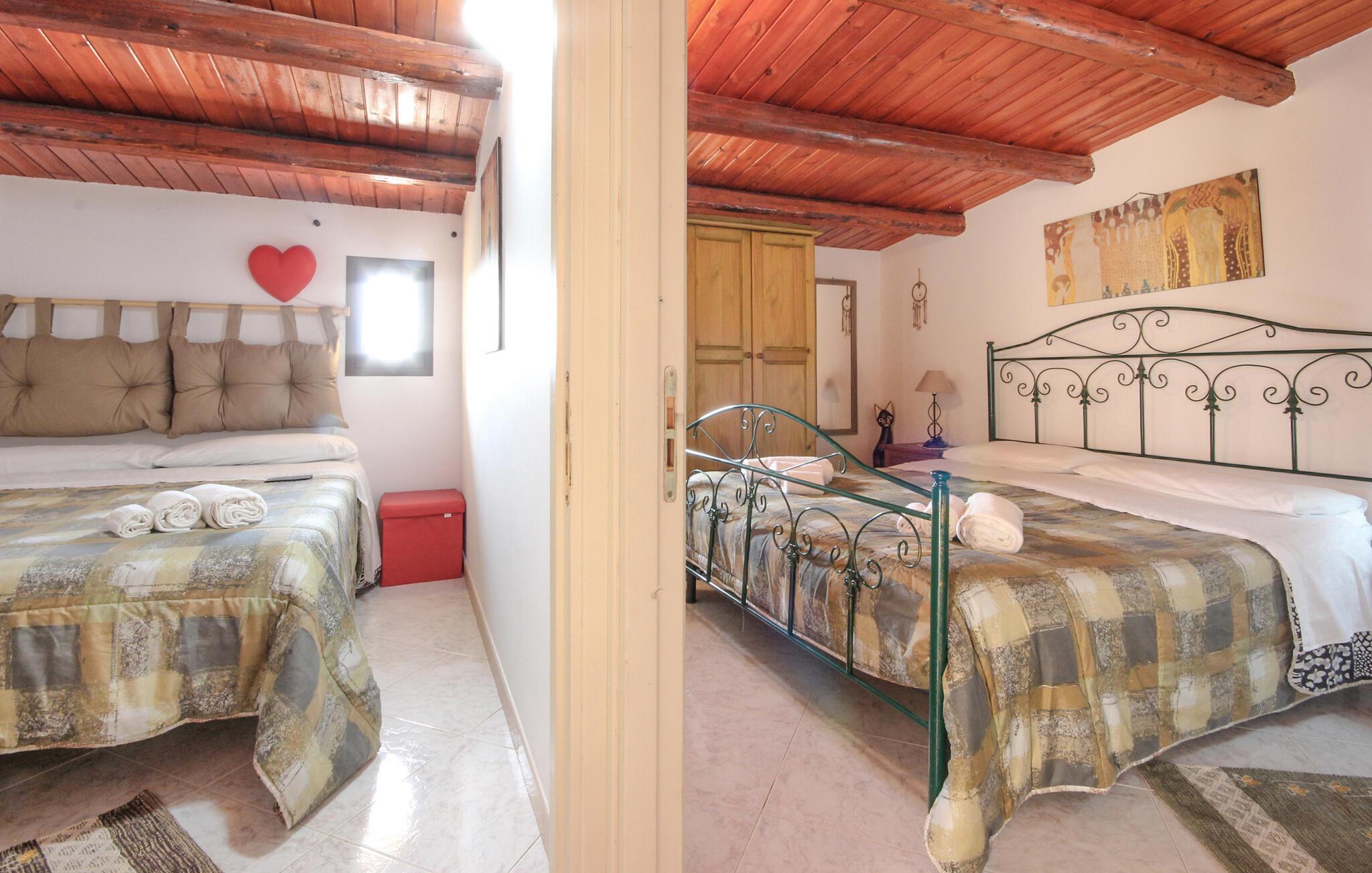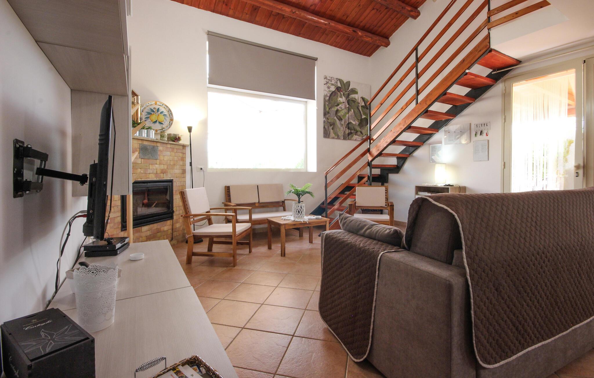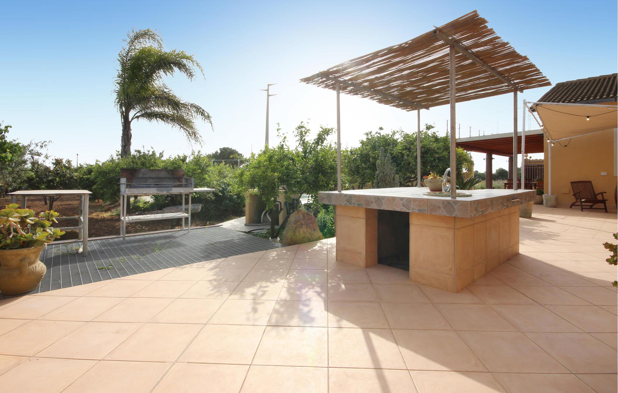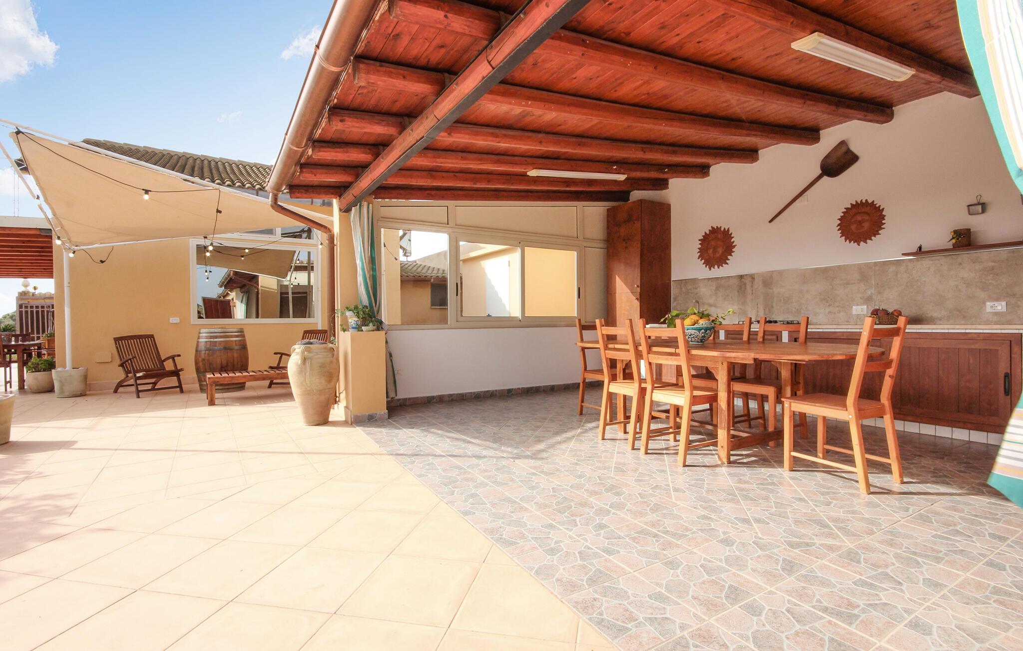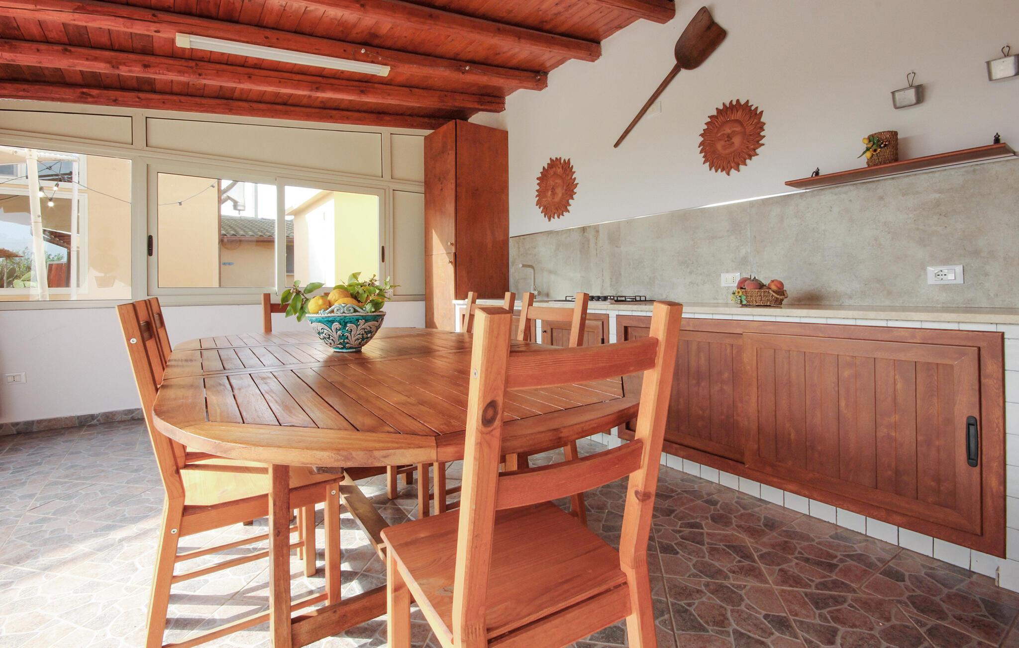 Dette feriehus er et tidligere bondehus, der nu gennem renovering er forvandlet til et fritliggende lille feriehus og ligger ca. tre km fra byen Memfi, på en lille privat grund på en bakke, der falder ned mod havet. Nyd de rolige omgivelser med panoramaudsigt ud over landskabet, blot fire km fra havet (luftlinje – i bil en seks km lang tur). Foran feriehuset ligger den store terrasse med havemøbler og en citrusplantage, et godt udstyret udendørs køkken med stengrill og stenovn. Slap af i den lille ovale pool. Fra den rummelige kombinerede opholds- og spisestue (tv med satkanaler, musik- og klimaanlæg) med sovesofa er der to udgange til haven. I soveværelset med dobbeltseng på første sal er der også klimaanlæg. Enkel og praktisk indrettet. Parkeringsplads med fjernstyret port. Af Afstande: 3 km Menfi (butikker og restauranter), 6 km Fiori med sandstrande; in ca. 10 km det skønneste kystafsnit med klipper og lune sandbugter (naturbeskyttet område) og Portopalo, en berømt badeby med sandstrand og lille marina, 12 km Selinunte (berømt arkæologisk udgravning); 18 km Sciacca en betydningsfuld by på Sydvestsicilien; 70 km Agrigento med den verdensberømte Templets dal.