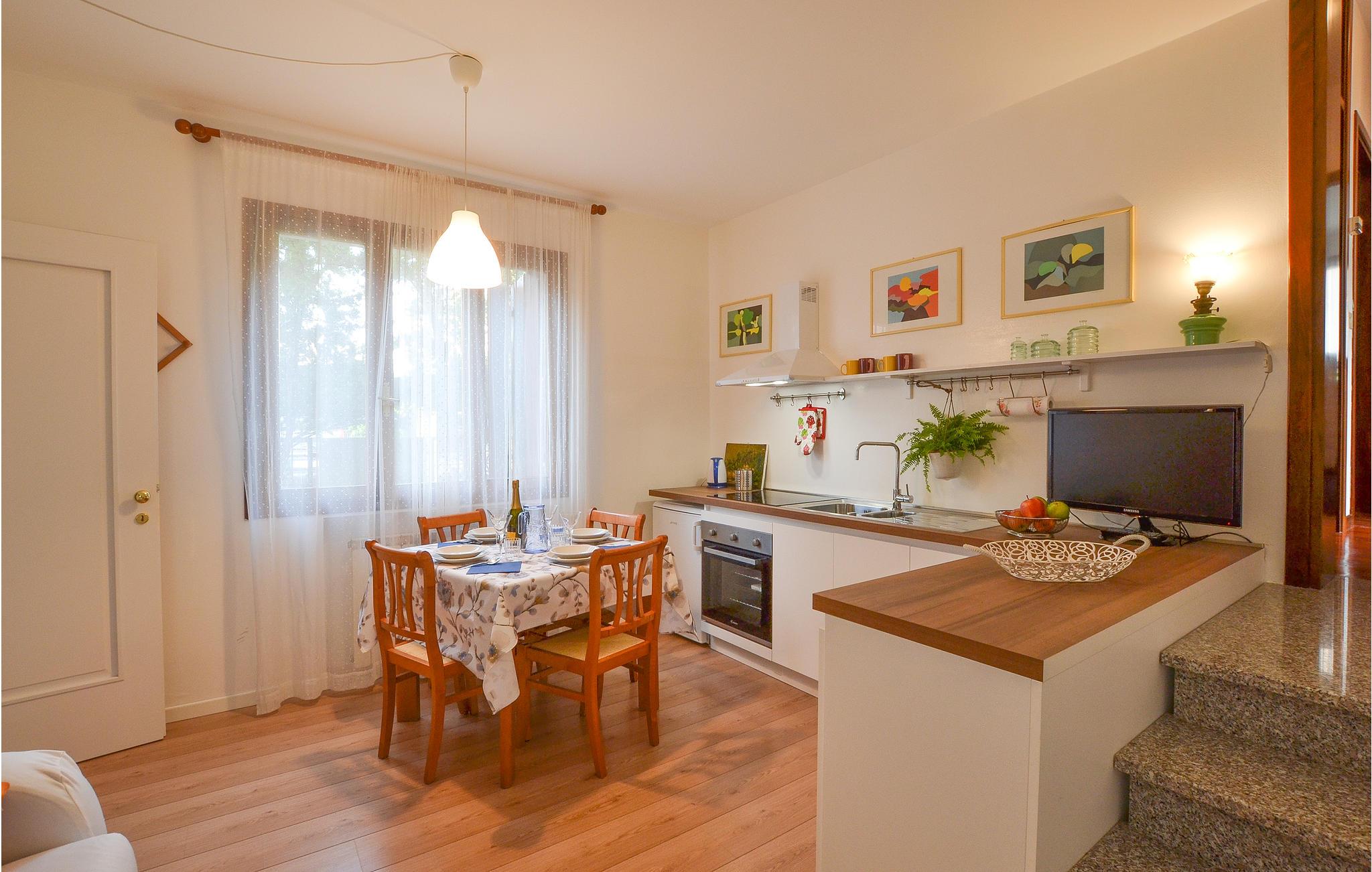 Glæd jer til en berigende ferie i dette feriehus. Værelserne er lyse og smukt møblerede og har plads til op til fire personer. Tilbered jeres måltider i køkkenet og nyd dem sammen ved bordet. Planlæg jeres dag med morgenmad – måske står sightseeing i det nærliggende Venedig på programmet? Eller måske en afslappende tur til havet og sandstranden?