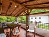 Stueetage: (spisestue(spisebord, pejs), Køkken(komfur(Komfur med fire kogeplader), ovn, køleskab), soveværelse(dobbeltseng), soveværelse(2x enkeltseng), soveværelse(enkeltseng), badeværelse(bruser, håndvask, toilet, bidet), badeværelse(badekar, håndvask, toilet, bidet), 2x kakkelovn(træ)) På 1. etage: (sofastue, terrasse, havemøbler) Kælderetage: (sal(pejs)) have(privat, indhegnet), havemøbler, parkering, swimmingpool(deles med andre gæster, 12 x 6 m., opened from Jun upto and including Sep)